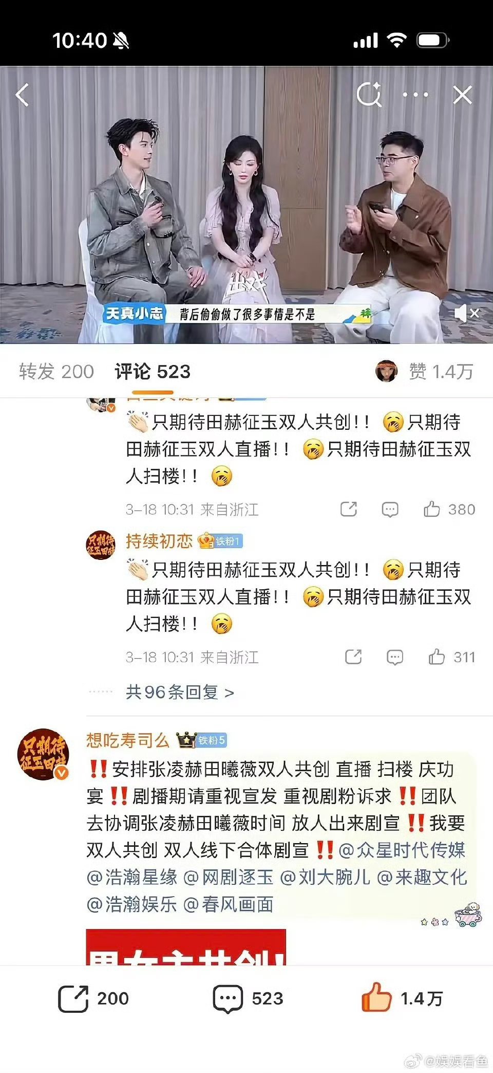 张凌赫田曦薇粉丝是不是太小气了?把副cp采访屠了整部剧只有副cp有点声量