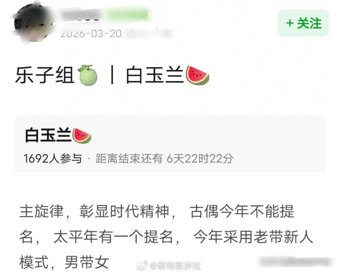 白玉兰奖又传出所谓的大瓜,大概意思就是奖项会采用以老带新的模式,最佳女主角会颁发给没拿过奖的新人。