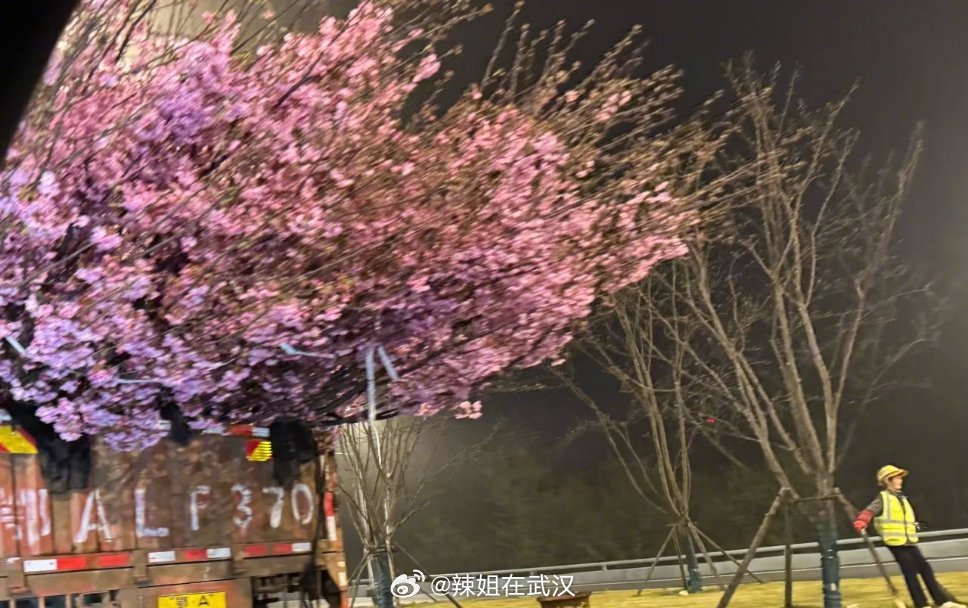武汉武汉为了明天的汉马也是拼了,大半夜现种樱花树武汉宜踏青赏花观汉马 武汉