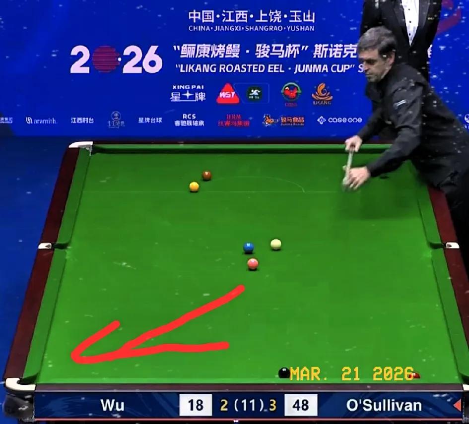 52-48,吴宜泽单局极限逆转,二连胜追平比分3-3。 第6局,吴宜泽开局长台准进拿1分,未联上彩球延续进攻。 防守中火箭觅得进攻机会,但在超分关键时刻失误,给了吴宜泽上手追分机会,尽管后续双方互有失误送大礼,但奥沙利文这个致命失误(如图2、3),让吴宜泽笑到最后,又拿下一个关键局。