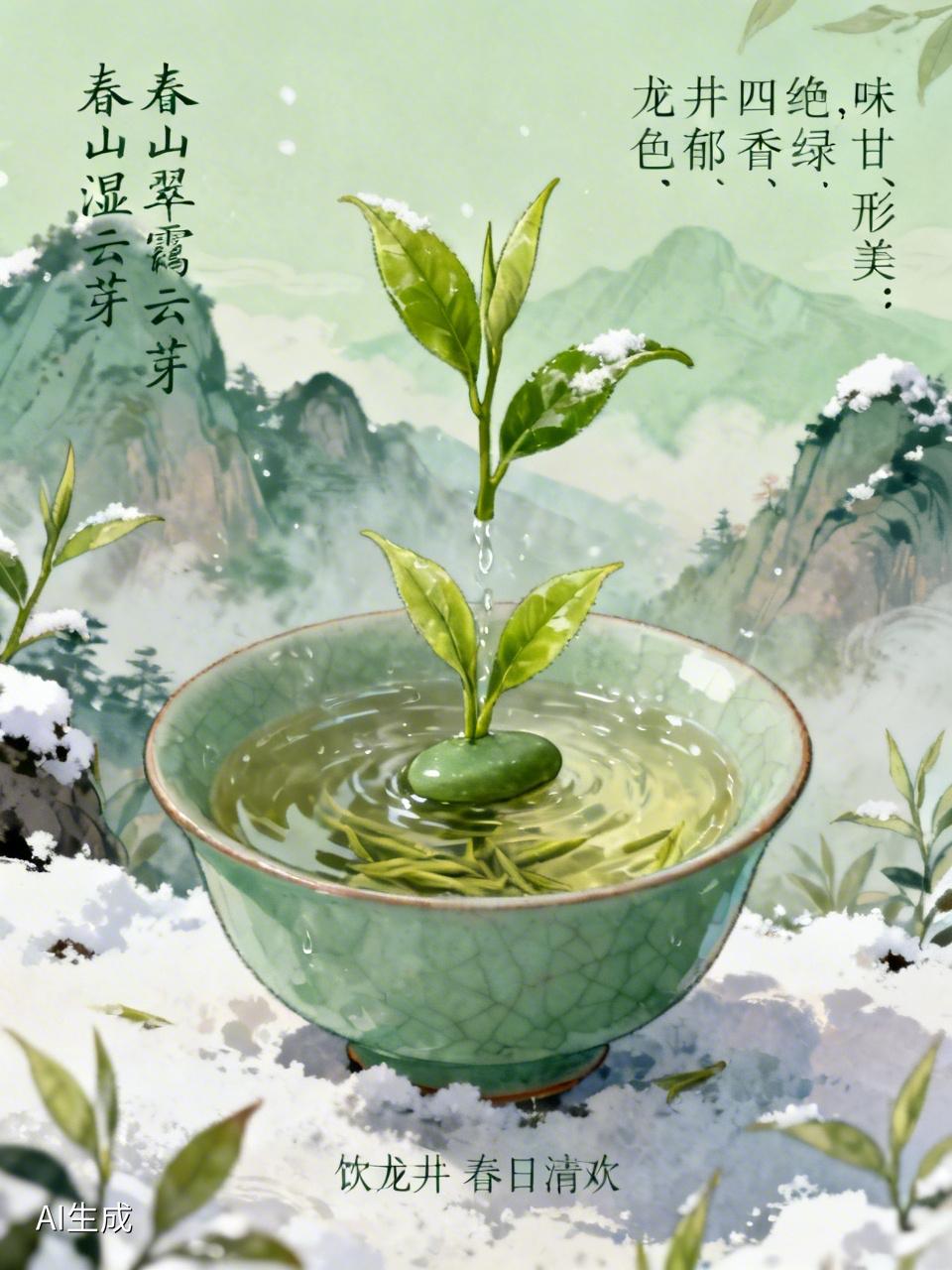 龙井春茶,泡出的是东方雅致的春日禅意。就像诗中“春山翠霭湿云芽”,春山初醒,茶芽破雪,那是大自然的馈赠。 龙井有“色绿、香郁、味甘、形美”四绝。取一撮,扁平光滑如翠玉,嫩香幽长似春风。沸水轻注,叶片舒展如春日新绿起舞,汤色澄澈。 饮龙井,饮的是春日清欢、东方禅意。它不像浓茶张扬,也不像白水寡淡,恰如东方处世哲学。一盏入喉,心便静了,世间纷扰随茶香散去。春日试这龙井新茶,真是顺应时节的享受。