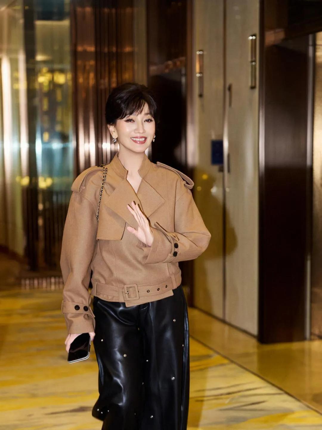 赵雅芝真的是奶奶辈穿搭的天花板!🧡 驼色短款夹克搭配黑色铆钉皮裤,简约又高级 利落版型衬得身形挺拔,贵气感直接拉满 70岁的年纪,状态和气质依旧能打,优雅永不过时! 赵雅芝 赵雅芝穿搭