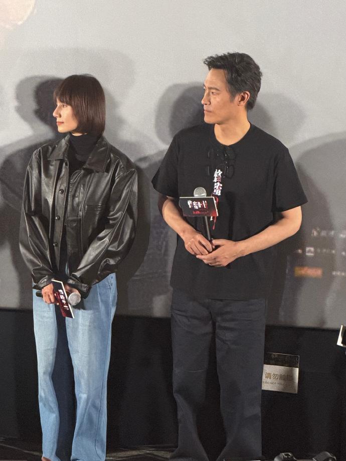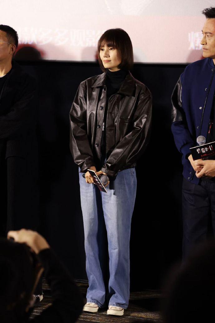 今天袁泉和宁静一起宣传新片,两位美女搭配的都很时尚,也都显得好年轻。 袁泉里面穿黑色的打底衫,外面套着黑色的皮夹克,两件衣服叠穿的效果很不错。 她下身穿做旧风格的牛仔裤,还留着时尚的波波头,凸显出了满满的文艺气息,气质极为出众。 袁泉最近瘦了很多,看上去有种骨感之美,还非常的酷,不得不说袁泉是个很有魅力的大美女。 宁静里面穿白色打底衫,然后套了一件黑色的字母风T恤,下身穿深蓝色的运动裤,脚踩黑色运动鞋,显得很有中性时尚范儿。