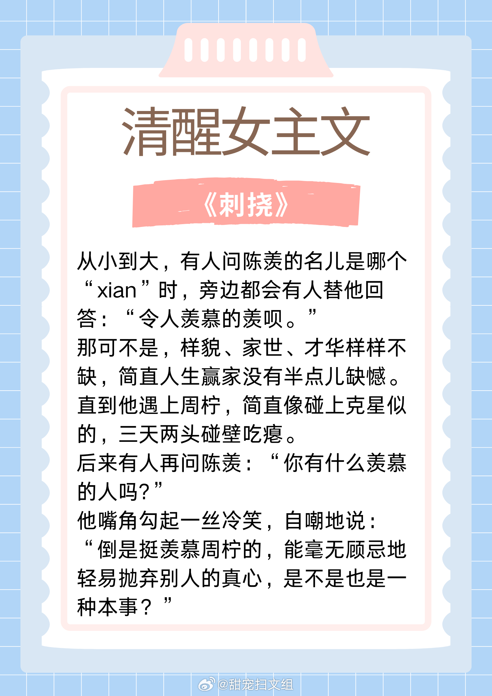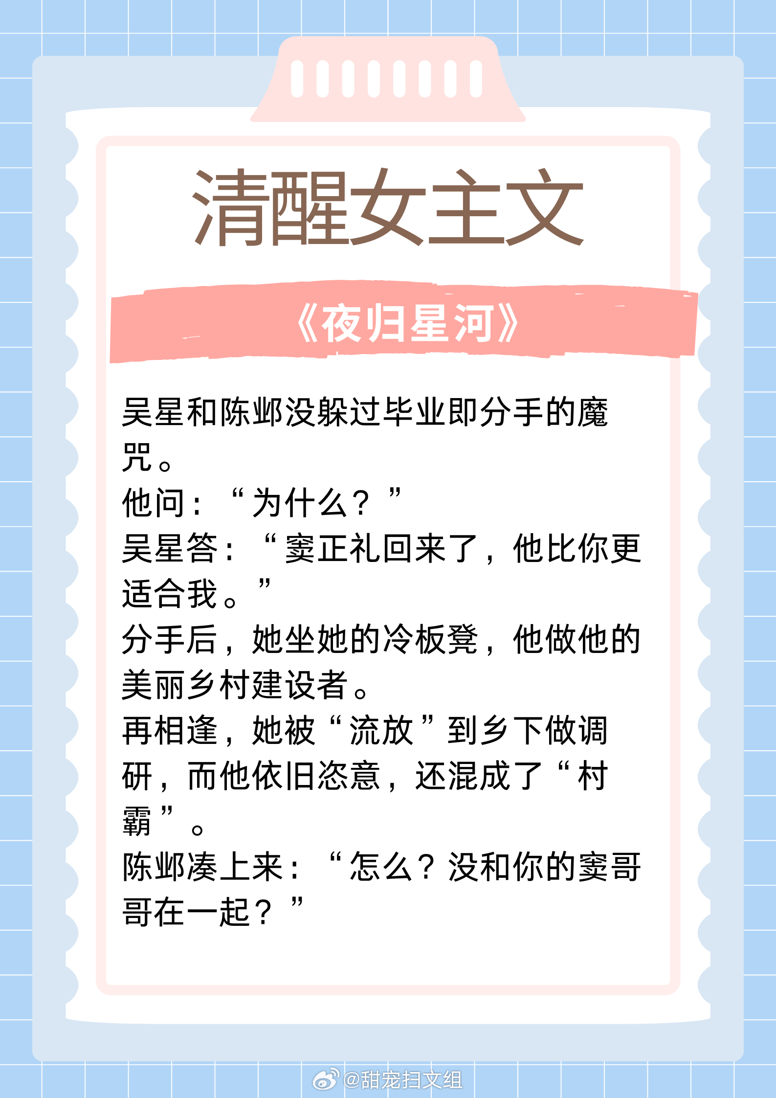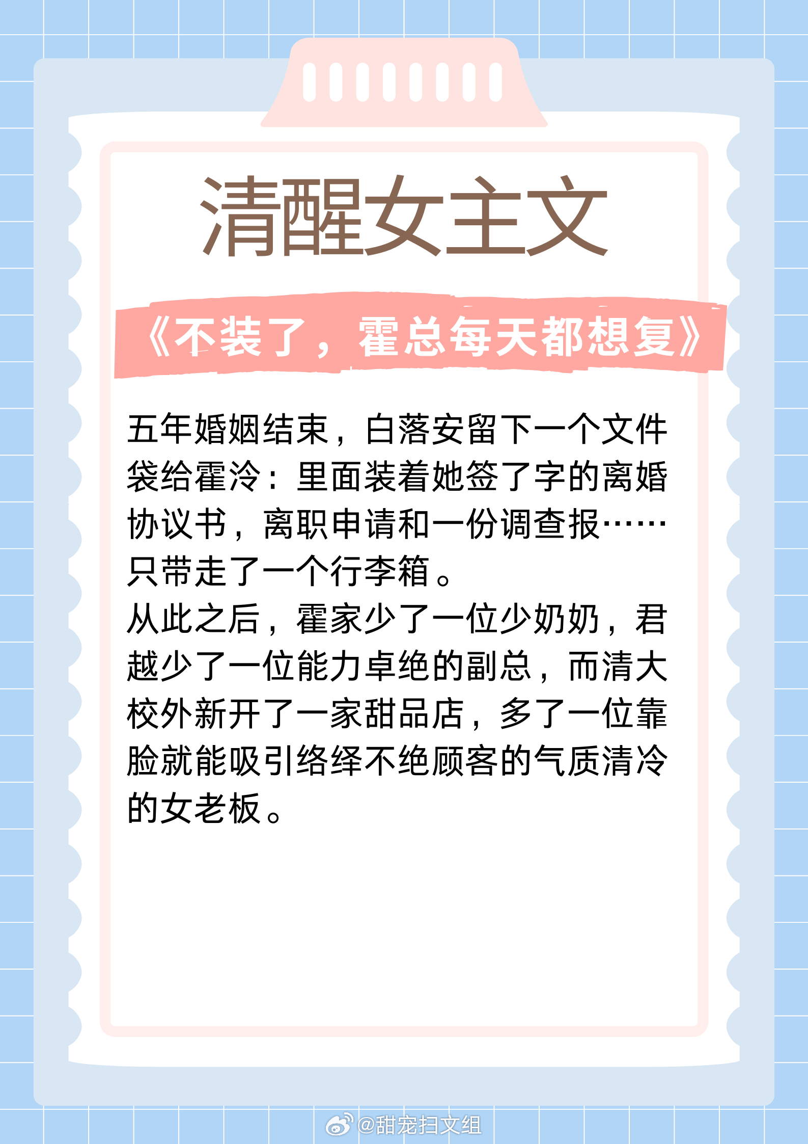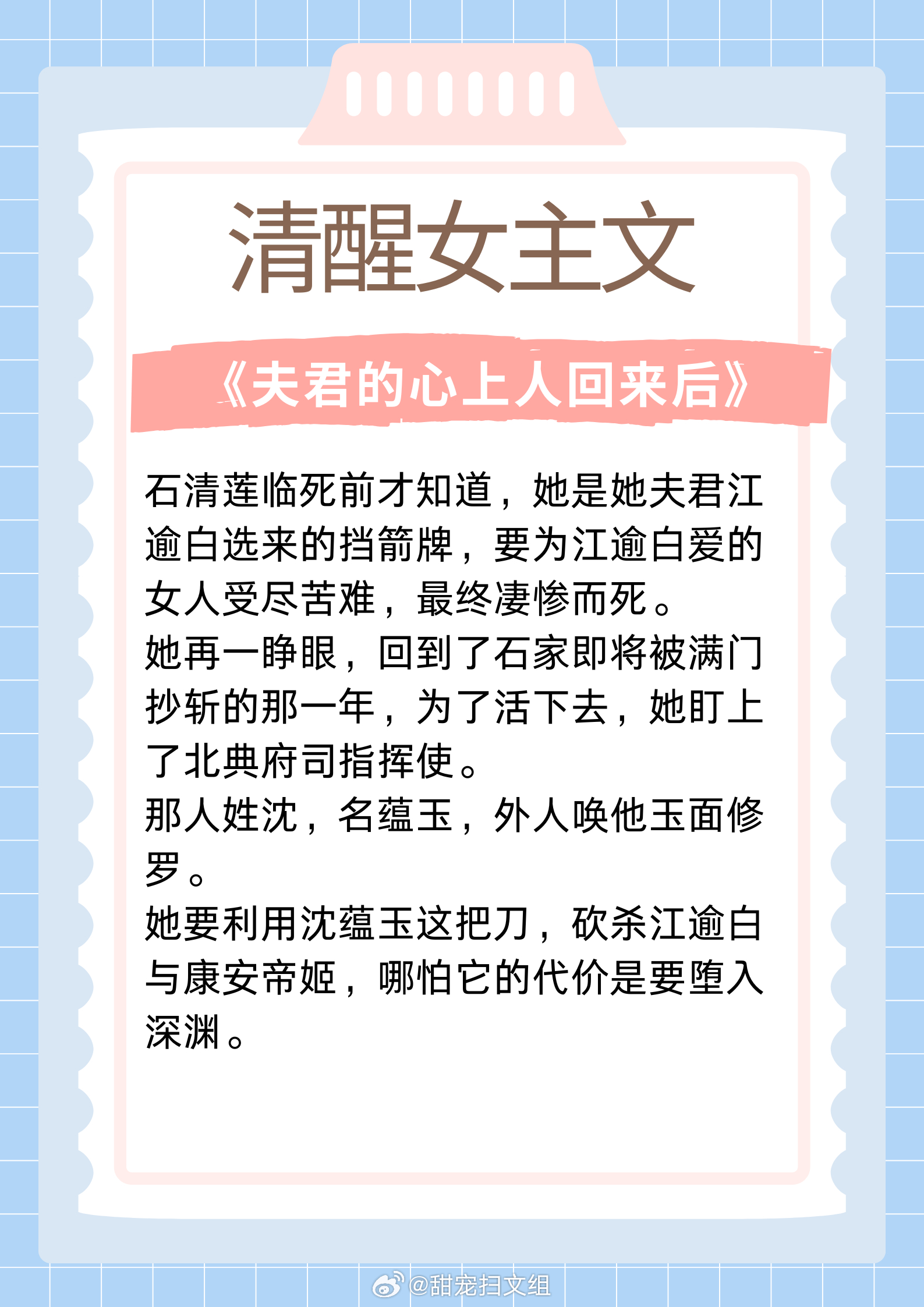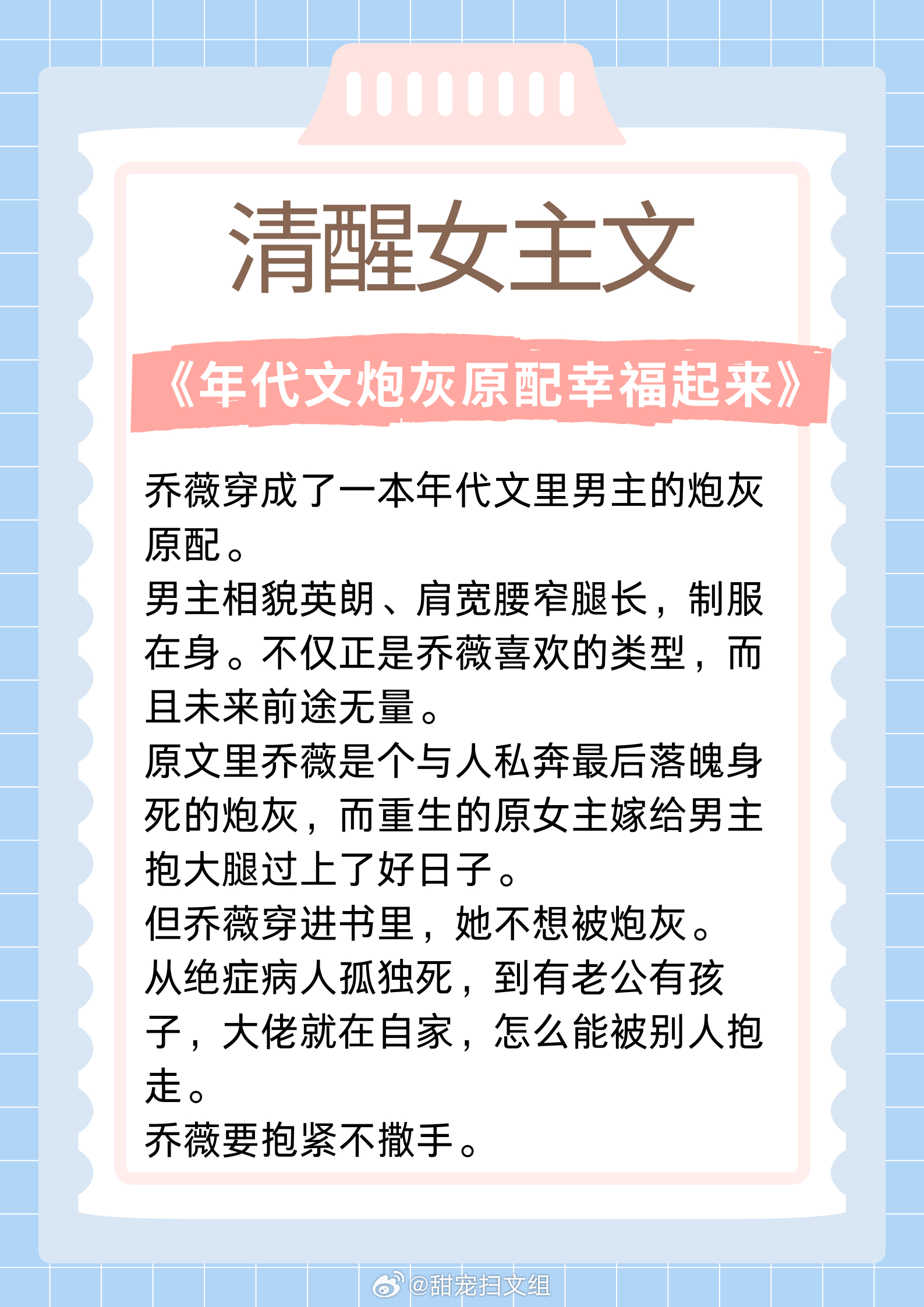 清醒女主文,聪慧富家千金,有颜值有手段!坚韧贫穷少女,内核超强大!1. 《公府娇媳》 作者:浅春山2. 《刺挠》 作者:林不晚3. 《年代文炮灰原配幸福起来》 作者:袖侧4. 《夜归星河》 作者:咚咚锵5. 《夫君的心上人回来后》 作者:宇宙第一红6.《不装了,霍总每天都想复婚》 作者:乌苏泡仙贝让我吹爆的宝藏小说 这本小说爆好看
