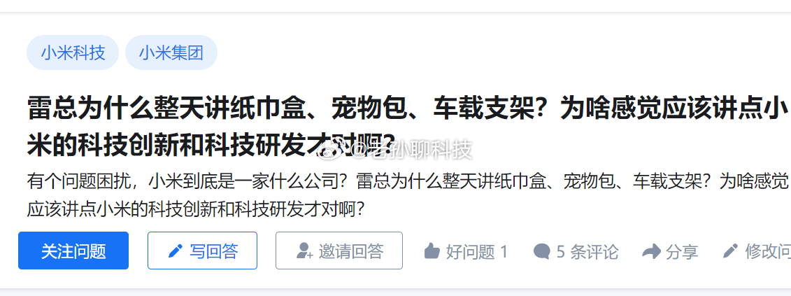 知乎提问:为什么雷军整天讲纸巾盒、宠物包、车载支架这些没有技术含量的东西?