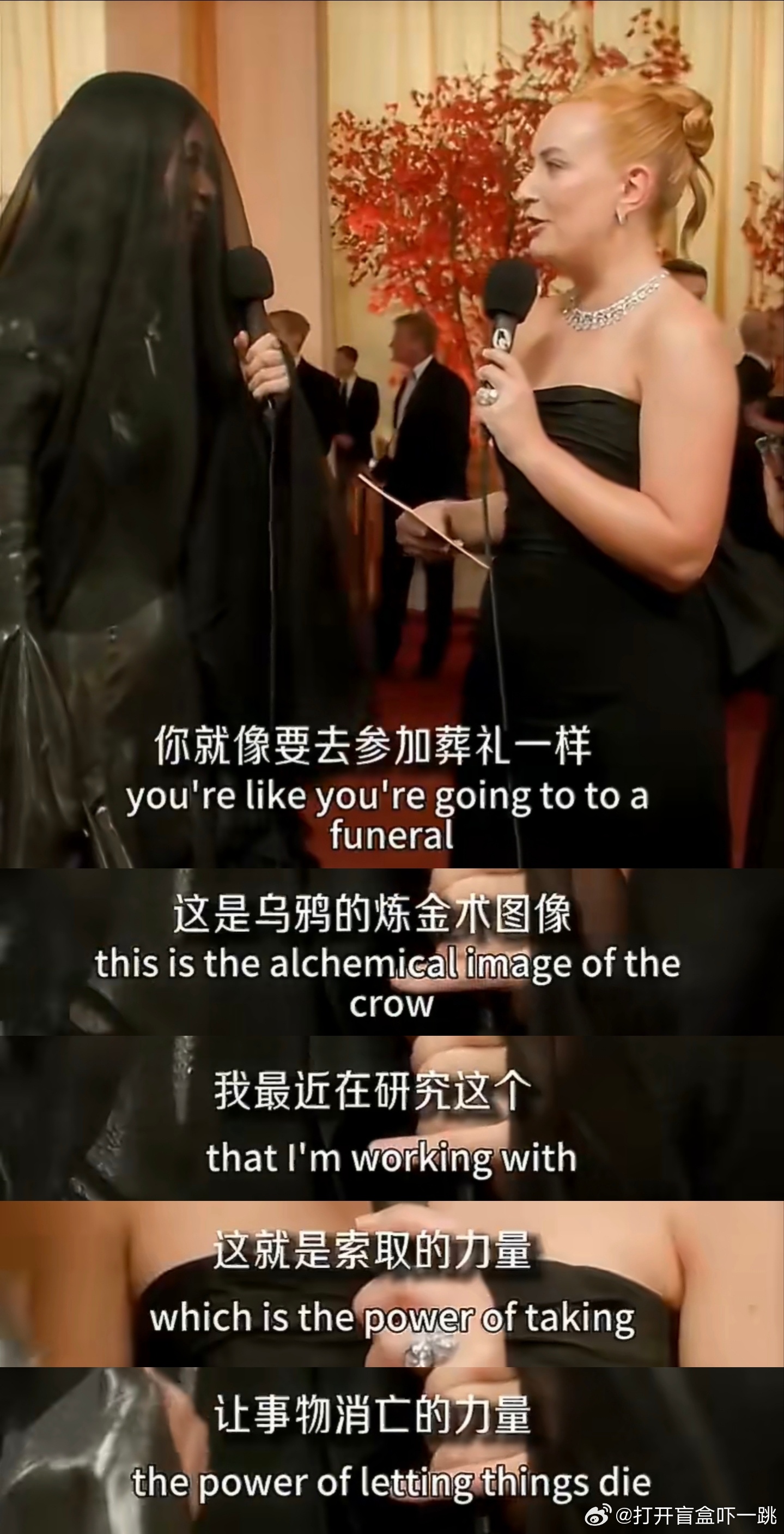 前几天我看赵婷导演这身打扮去奥斯卡走红毯就感觉不太吉利,现在回看录像才知道当时采访赵婷的主持人当面直言:你穿得就像要去参加葬礼一样。赵婷则表示:我最近在研究乌鸦炼金术。可能是我不懂艺术,这事儿确实挺抽象……魔金石科技