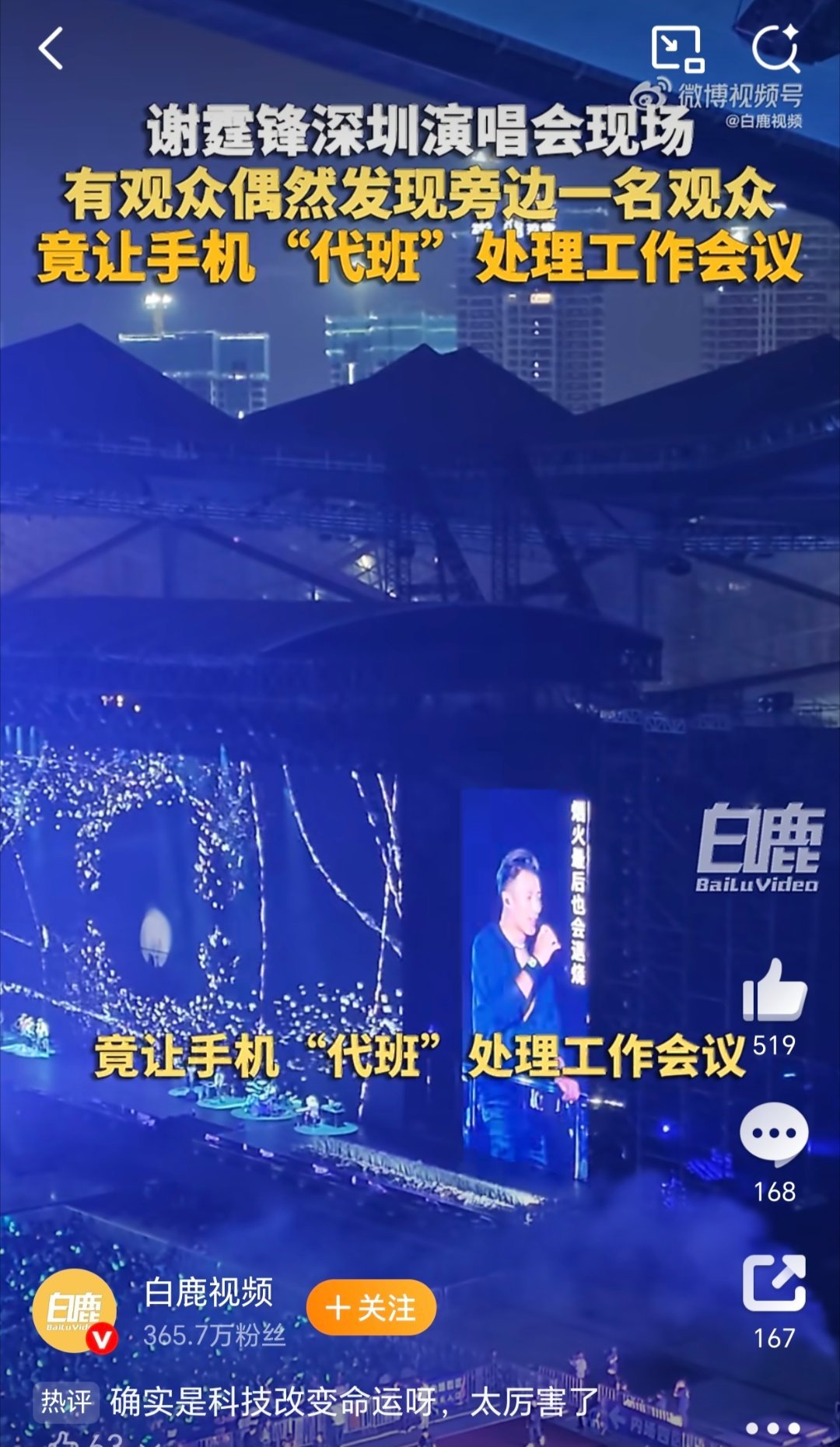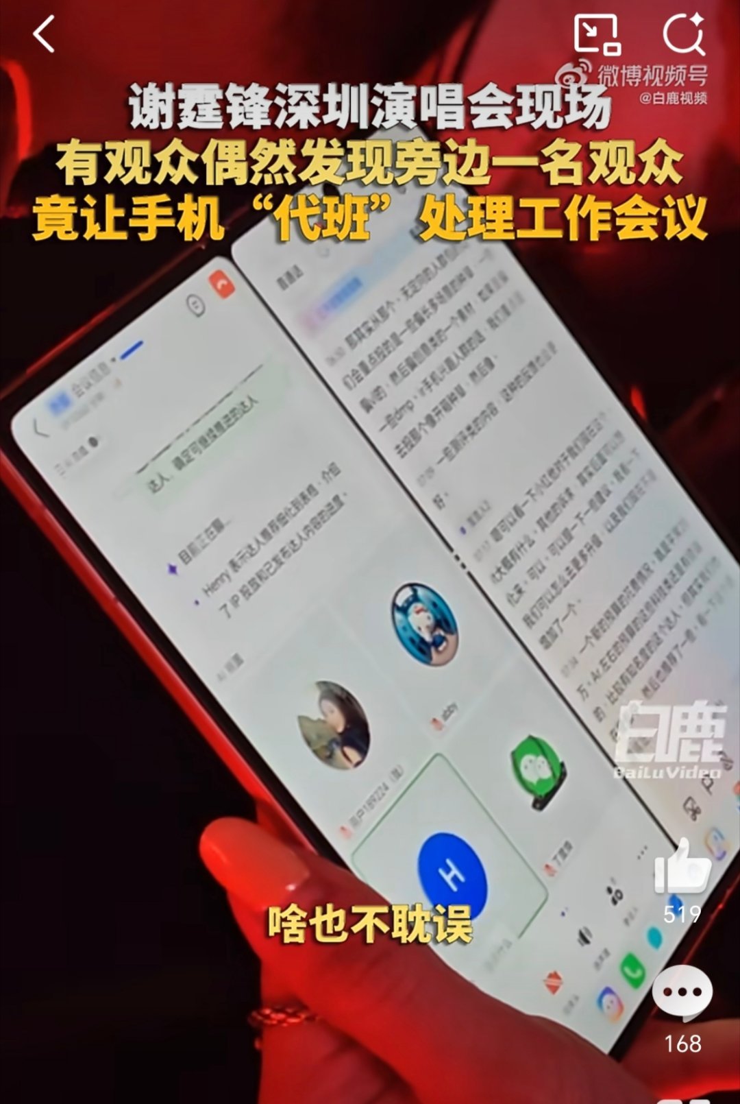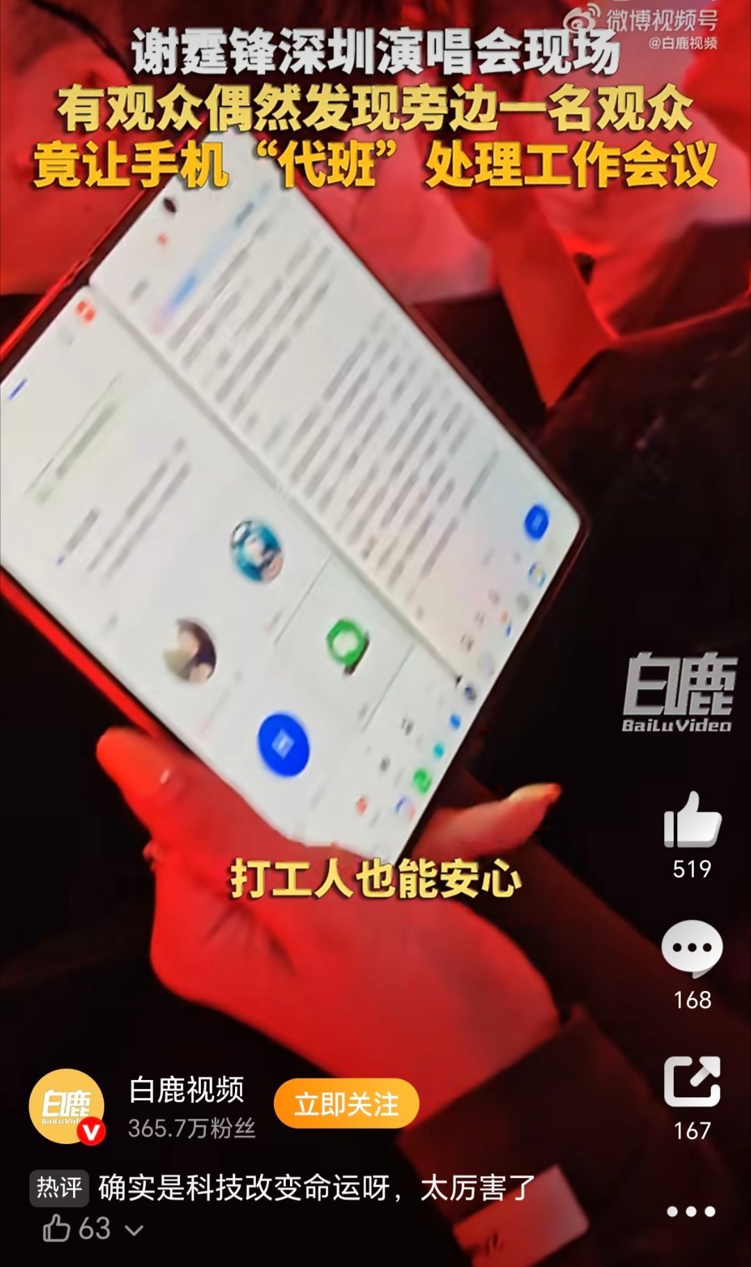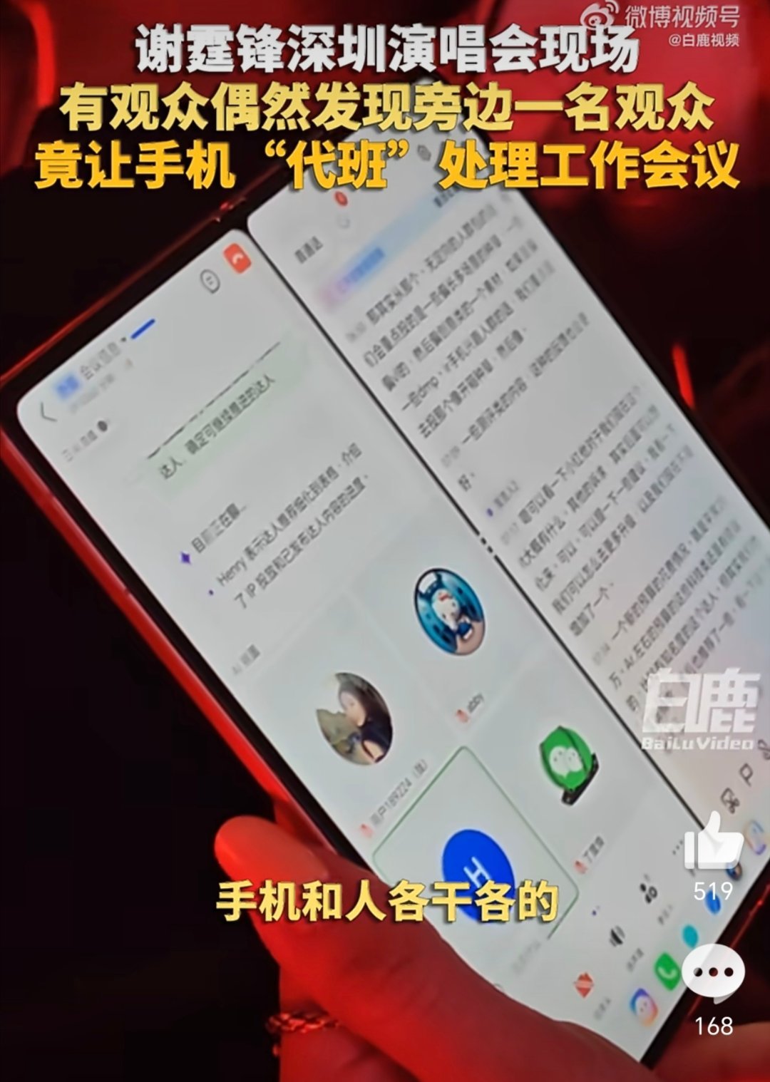 我和手机在演唱会各忙各的这姐厉害了,边看谢霆锋的演唱会边用手机AI边开会,看这大