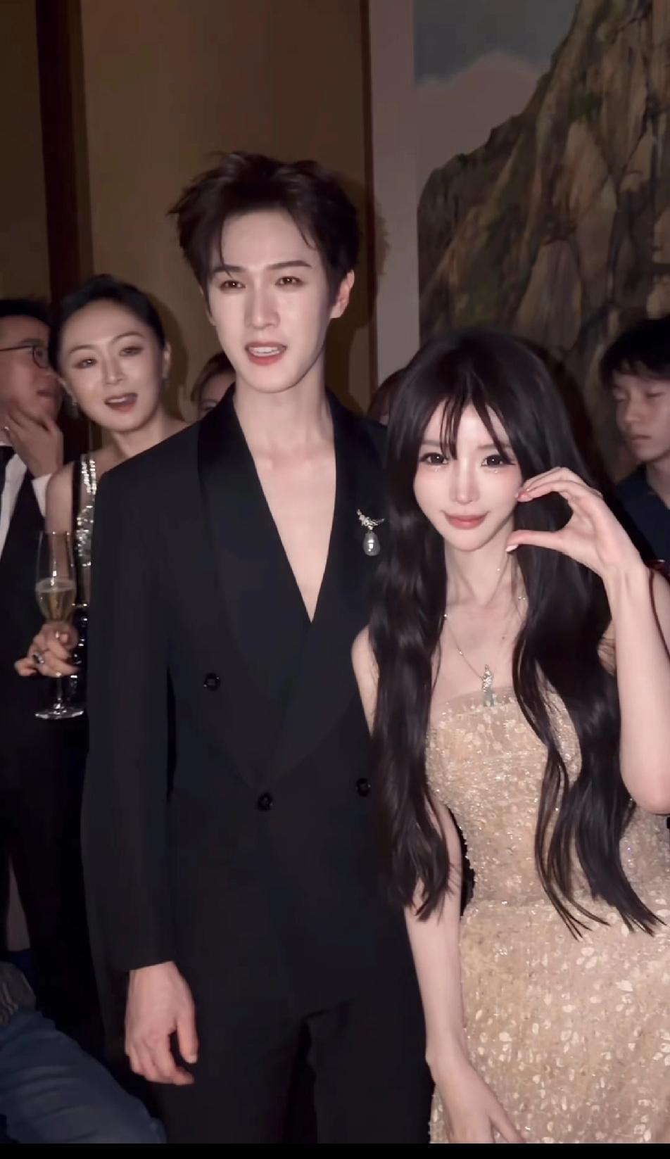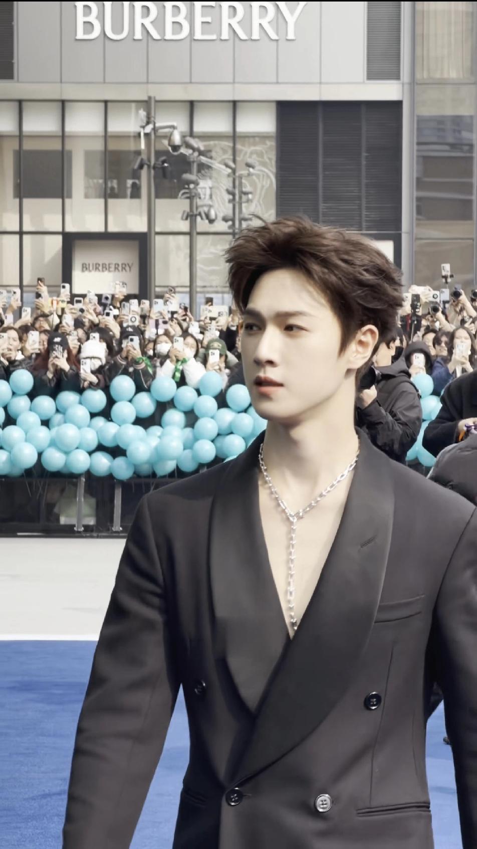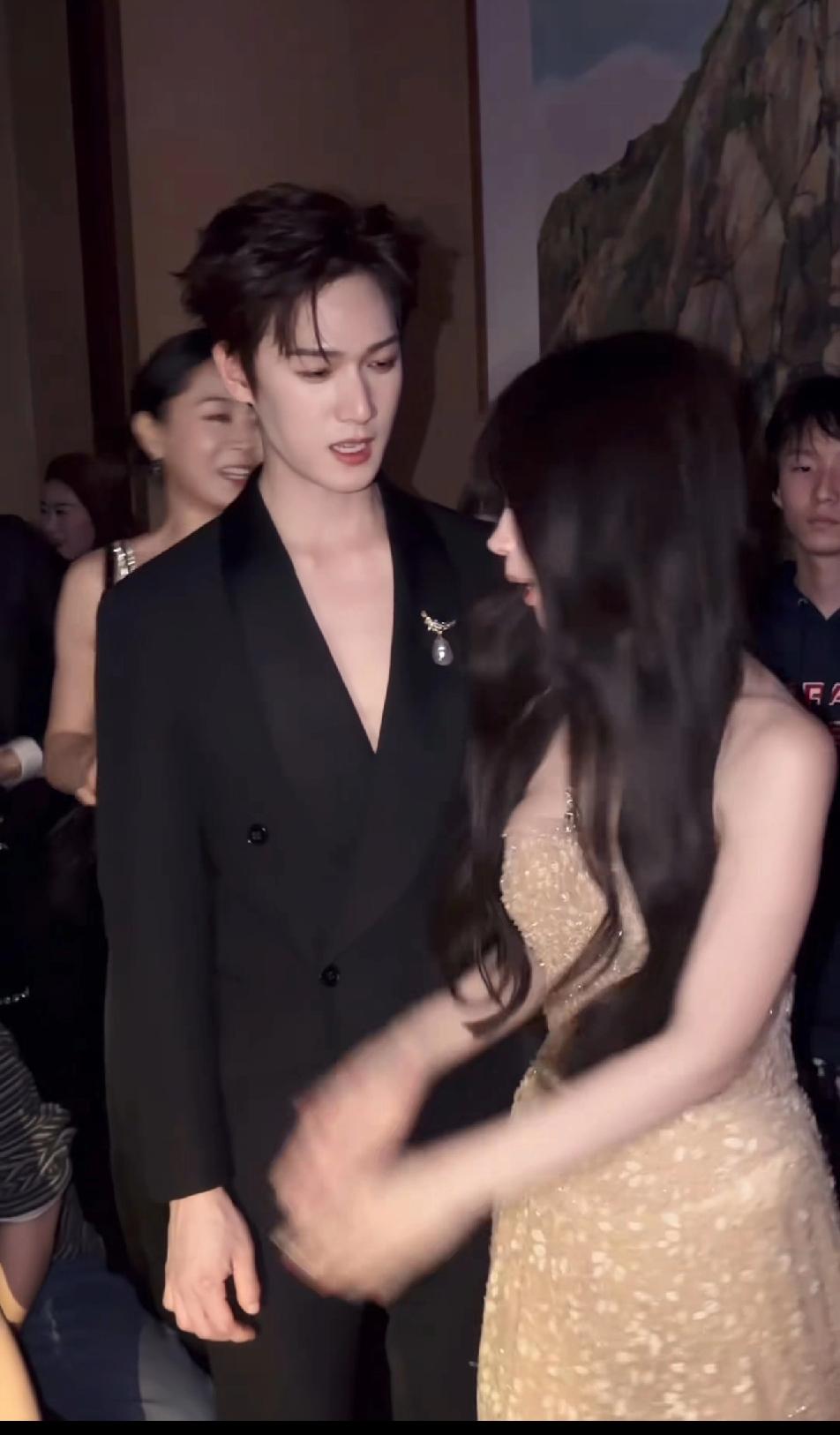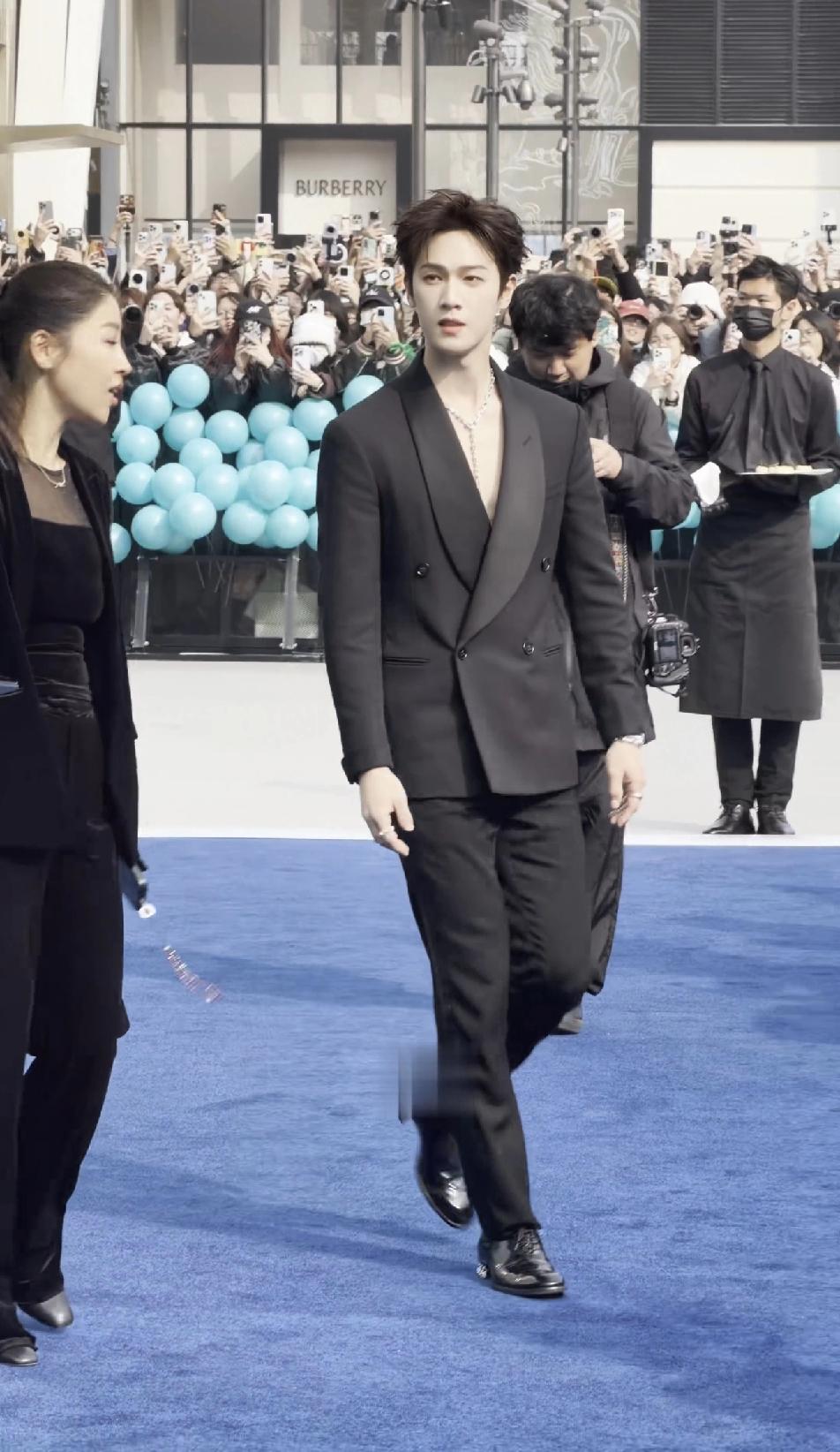 李昀锐脖子上的项链也不知道被哪个参加晚宴的富婆买了,反正一开始华丽丽的戴在脖子上,一场晚宴下来就不在了,都说富婆特别喜欢买明星戴在身上的珠宝,果然是这样的!项链没了,Tiffany就给李昀锐又安排了胸针,估计戴不了多久又会被哪位富婆买走的!