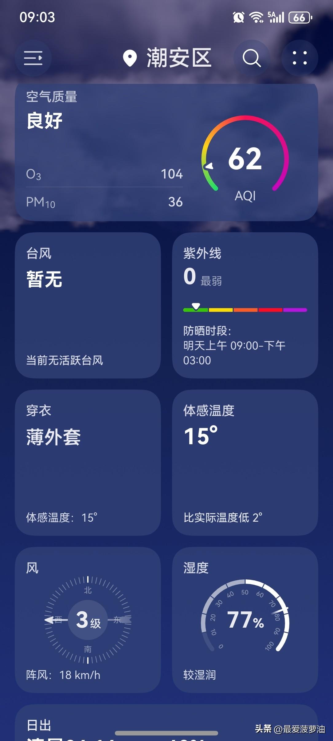 今明天全国大部地区气温冲高,南方迎新一轮降雨过程! 明天湖南、云南、西藏局地有大雨;后天雨雪影响范围继续扩大,湖南、湖北、浙江、福建、贵州局地有大雨,江西局地有暴雨。 22~24日,广东大部市县可见阳光,早晚有轻雾局部有雾,昼夜温差大,早晚清凉,其中西部市县云量较多,局部有零星小雨。 今天(21日),潮州喜提一个多云天气,气温15~25℃,此刻气温17℃,体感温度15℃。 今天总感觉凉飕飕的,全天最高气温居然有25℃,可怎么感觉冷呢?就算白天在街上走着,也没感觉到暖啊!因为今天的风还是有点大。 这天气还是不能只看着气温来挑选穿搭! 时暖时冷的天气,确实有点折磨人了! 为了不让感冒病毒有机可乘,还是多穿一点好吧!
