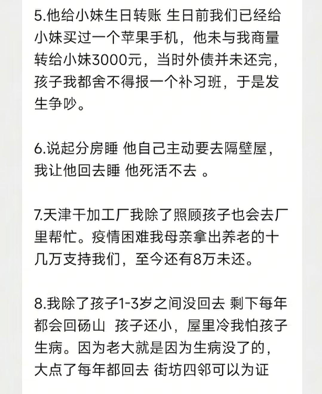 林丽对怀远诉说的各种问题,进行了逐一回应。 24年底离婚问题,小妹生日送礼物事宜,小姨家孩子结婚问题,摔手机的原因,分房睡的问题…… 林丽对以前问题都一一做了回应。 其实这些问题,正常夫妻间都会有,但是现在心变了,所以问题都放大了。