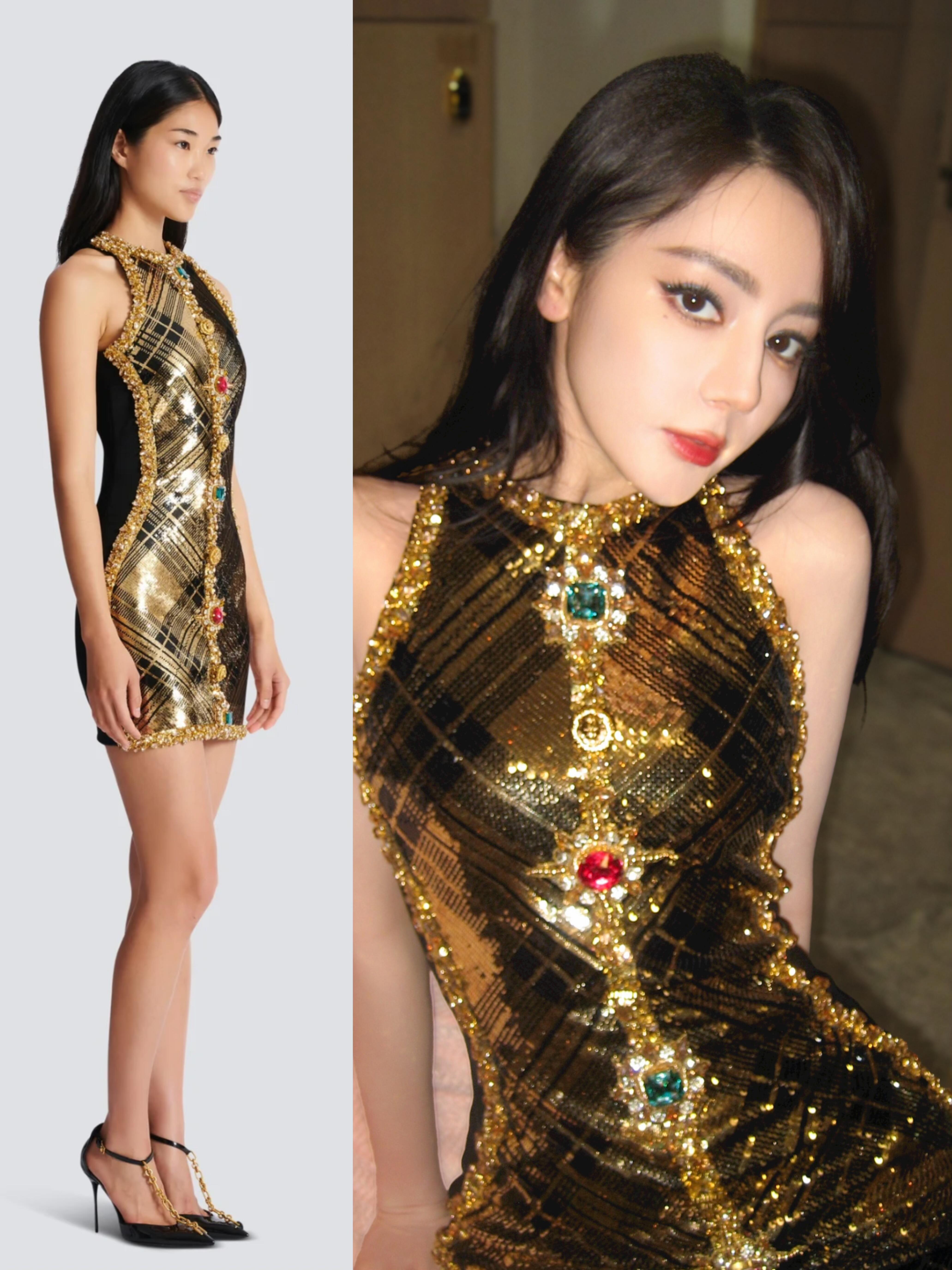 迪丽热巴鎏金宝石裙迪丽热巴鎏金碎片裙天!迪丽热巴新造型又来了,一身鎏金色的裙子