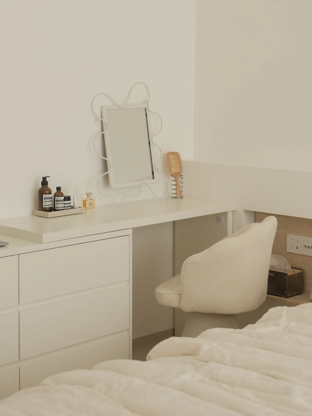 床边也搭配了斗柜梳妆台一体