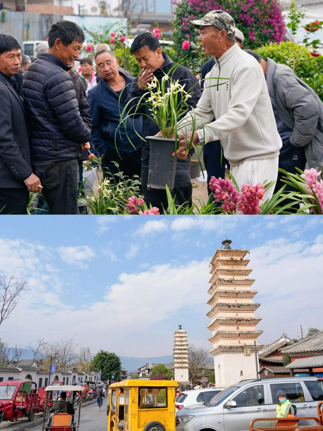 赶集天的双塔小广场