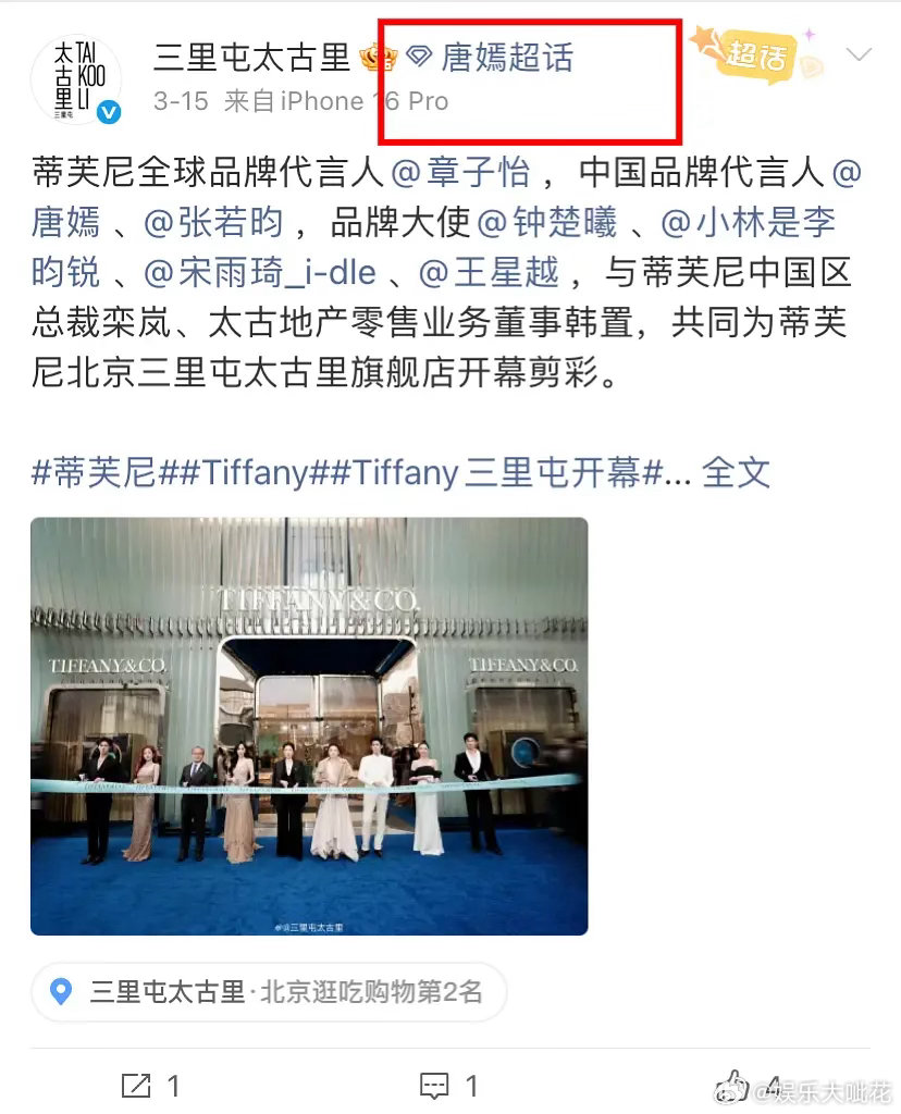 Tiffany后续应该已经很清楚了吧....Tiffany和太古里力挺这个唐嫣了