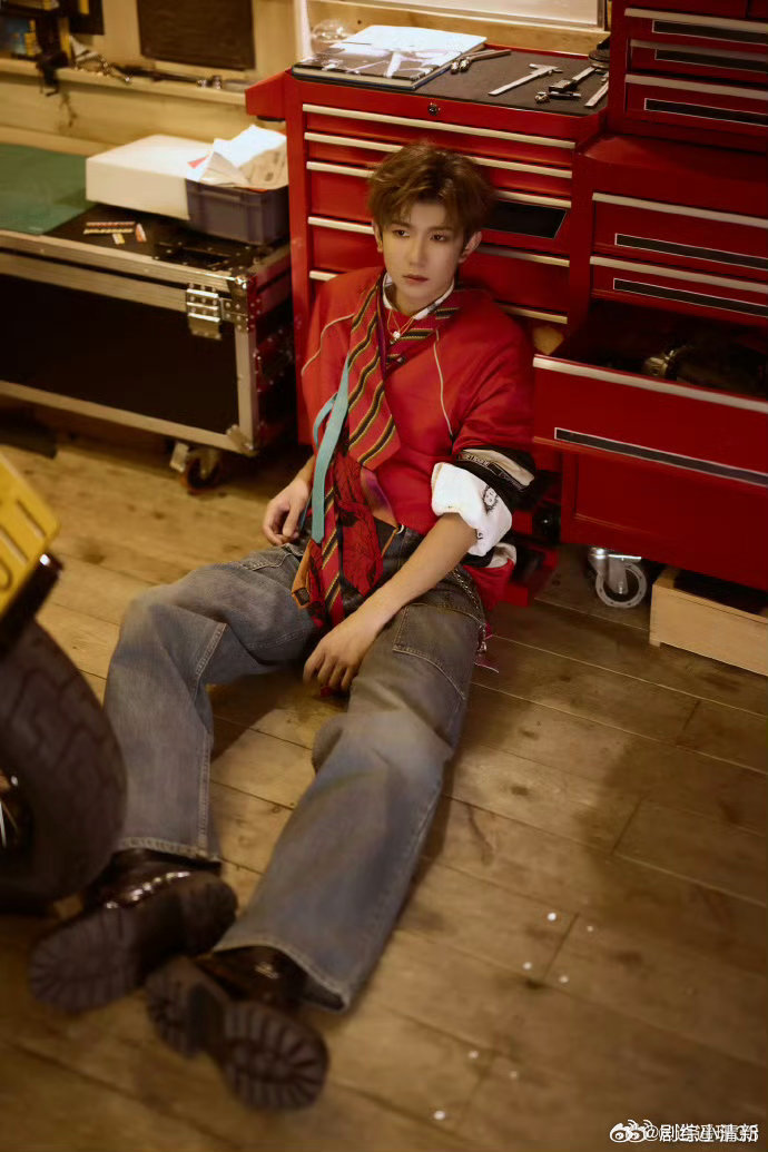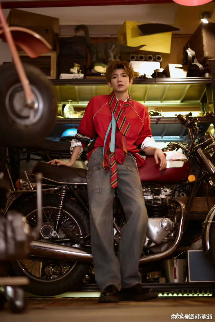 太好了是王源的机车风look 南宁压轴这套造型确实不错。复古机车风,裤子做旧,整个人看着又野又舒服。工业风背景也加分。