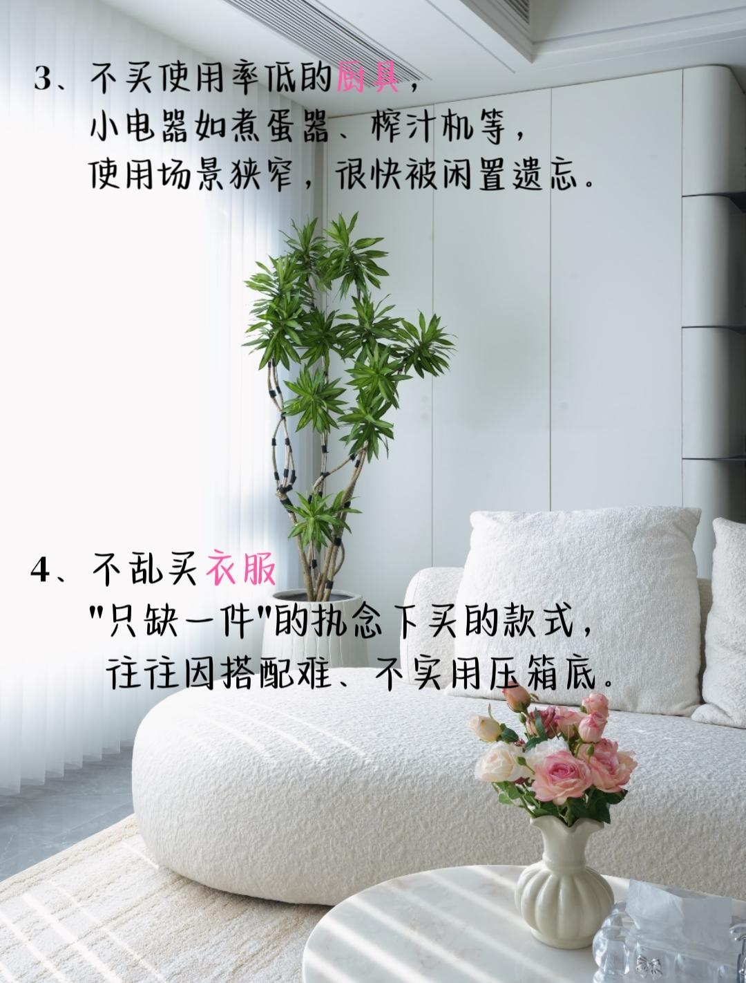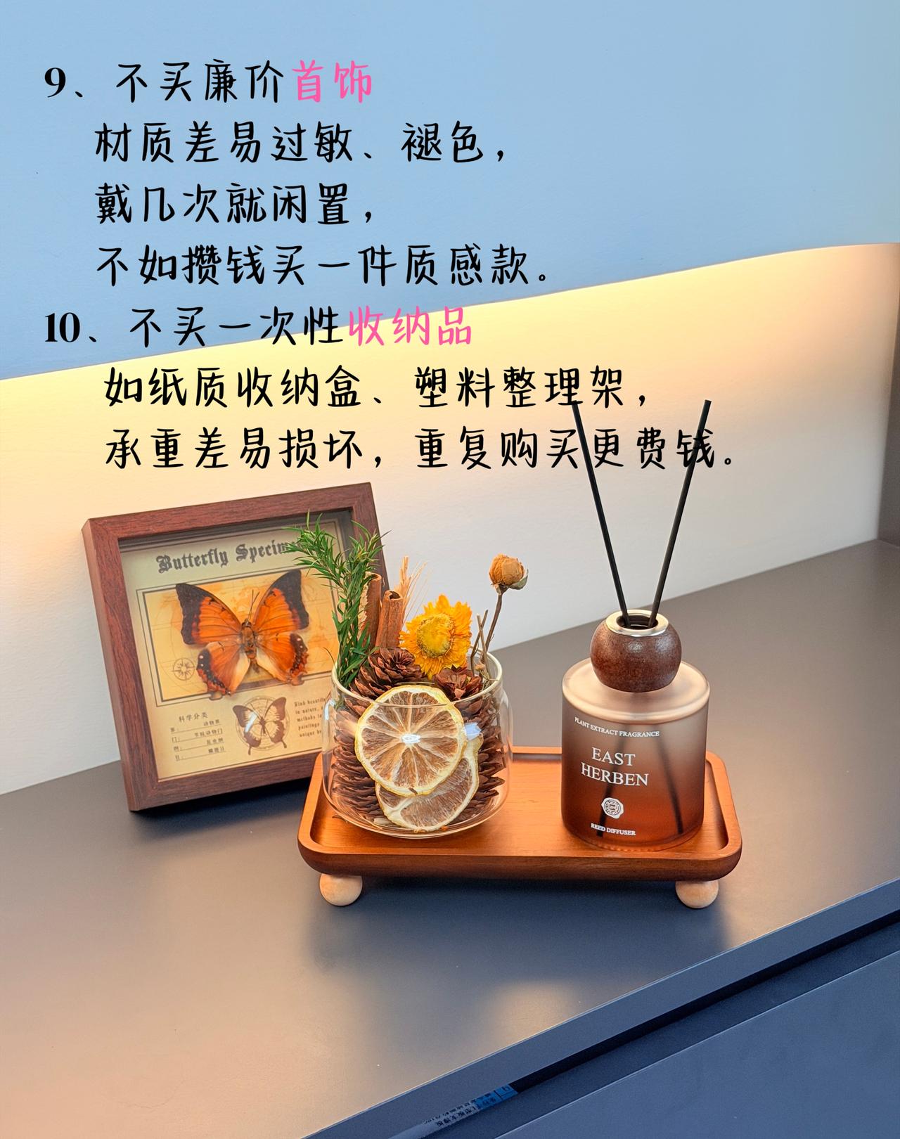 极简生活后的十不买 断舍离1年,不内耗,不焦虑。不买,不囤。 这次只写了十种,虽然不太,但是很多人,尤其是女生喜欢买的东西。因为我以前也是这样。 大家可以根据自己的情况写一个专属自己的不买清单。极简生活心得