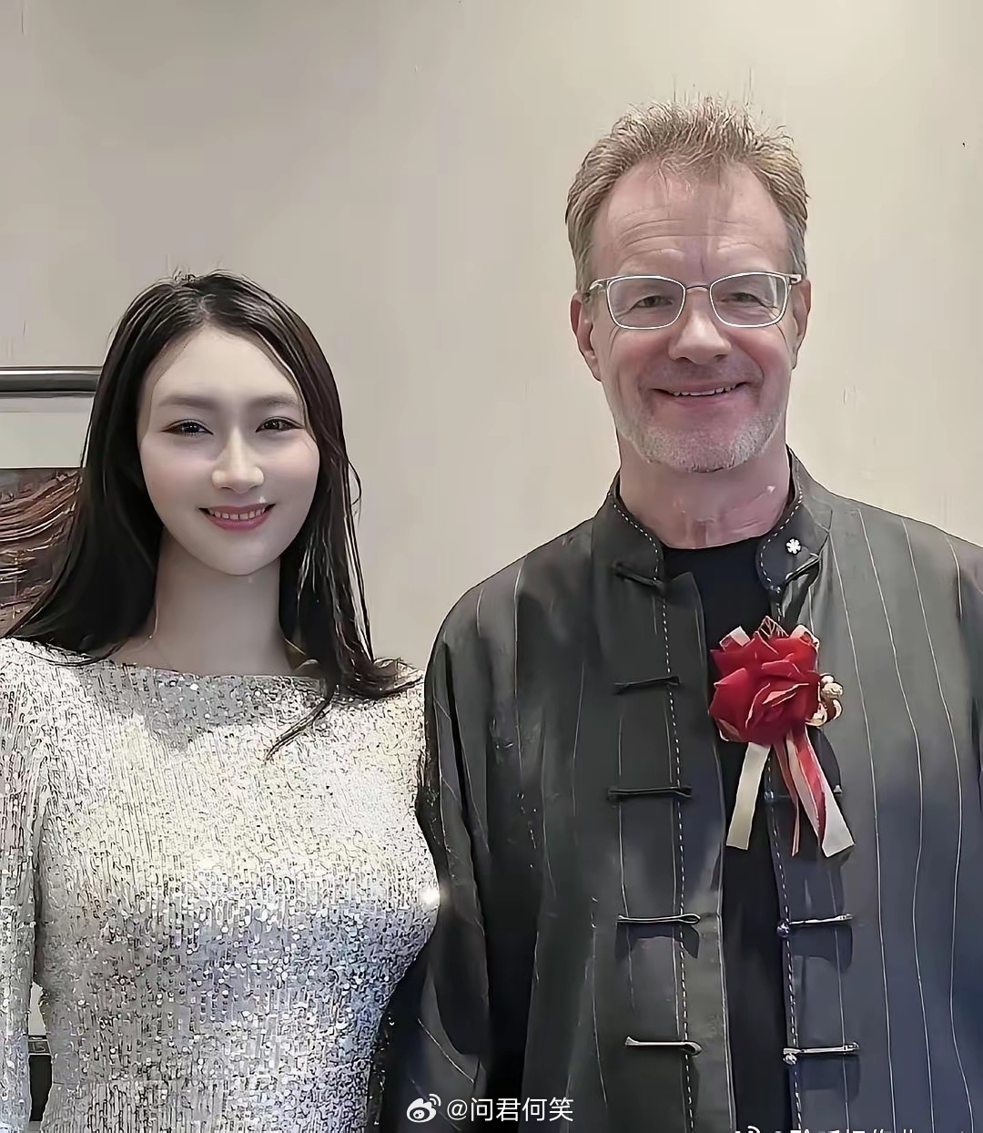 洋相声演员大山和中国妻子同框,妻子年轻又漂亮,完全看不出是两个孩子的妈妈。和大山略显老态的样子站在一起,更显得她格外青春。