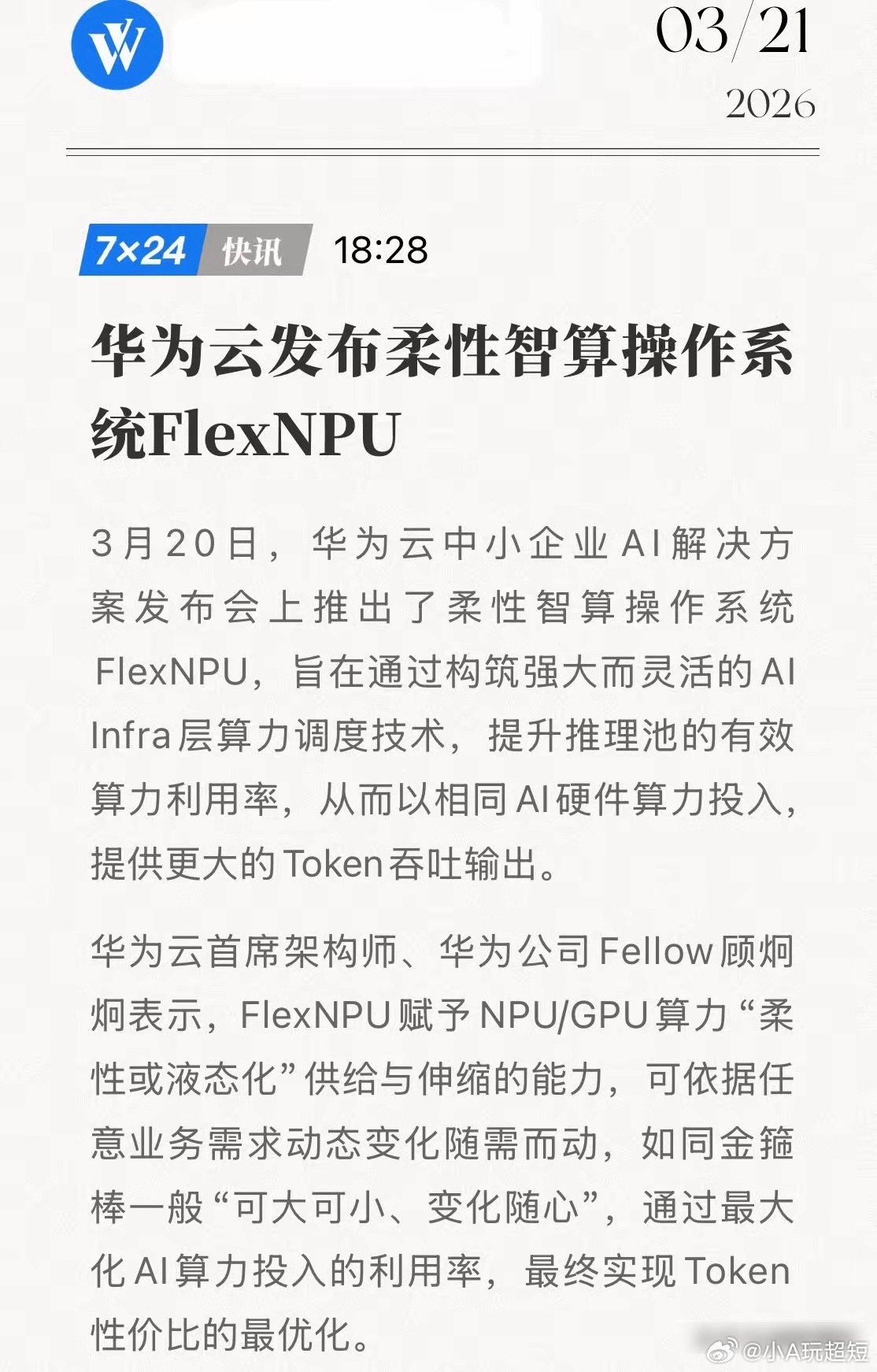华为FlexNPU横空出世!“柔性智算”黑科技,软件定义算力真王炸!3月20日,