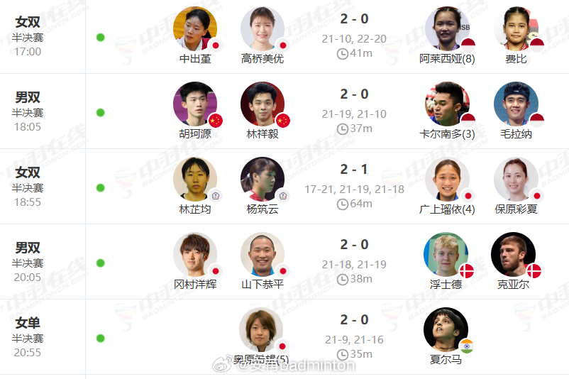 上半场比赛结束🔚下半场比赛凌晨零点🕛开始2026年奥尔良羽毛球大师赛胡珂源林