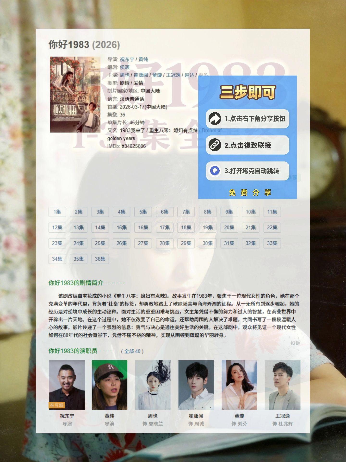 动作趑前笢牛津多好《你好 1983》全集观看方法教程,直接抄作业!你好 1983 周也 周也花式拒绝翟潇闻 你好 1983 大结局 你好 1983 开播
