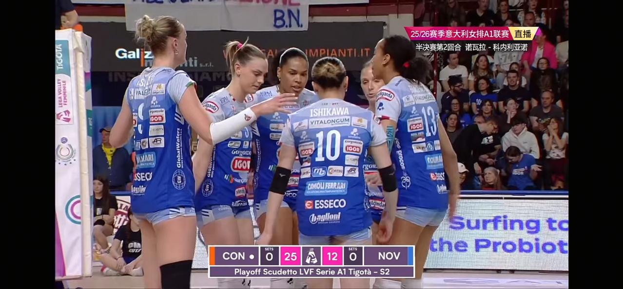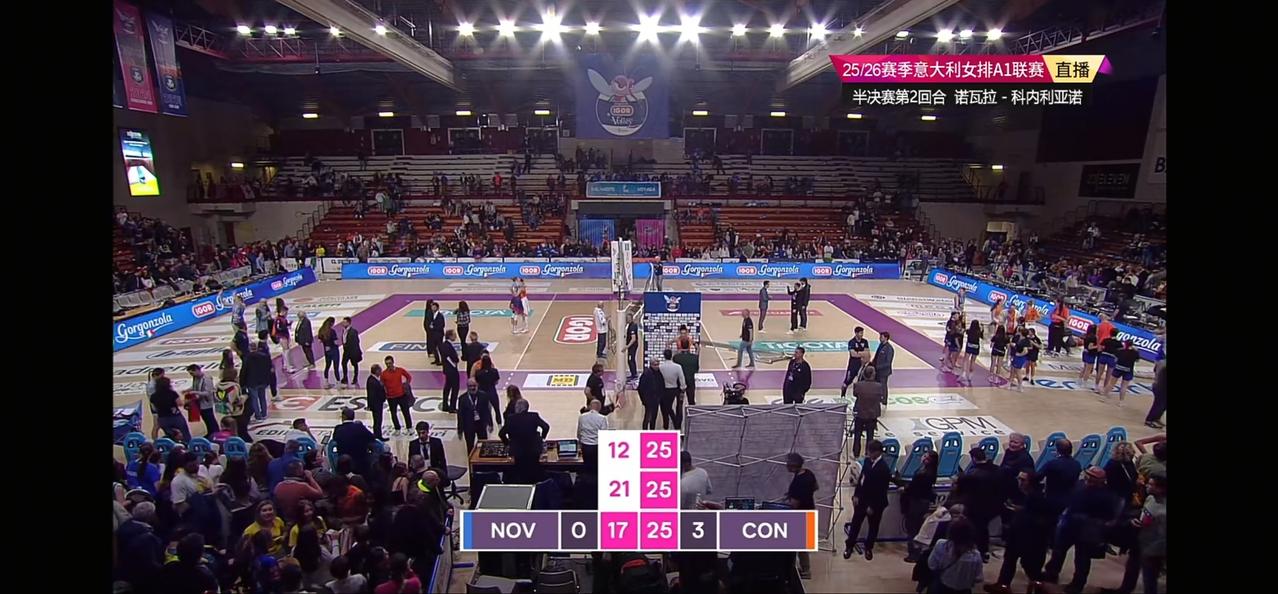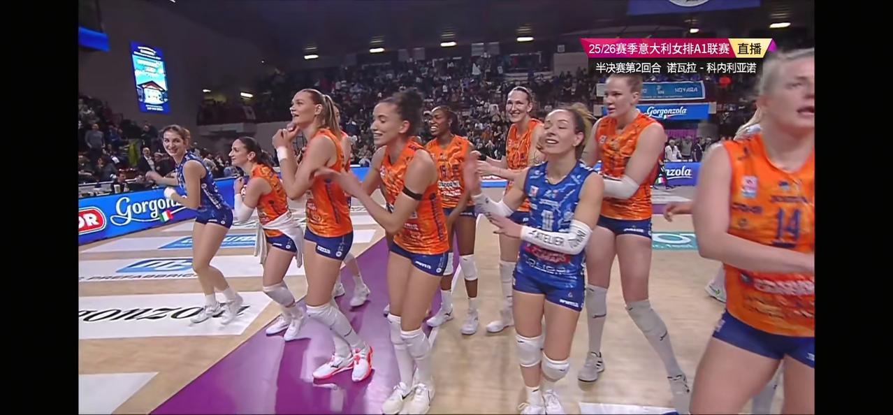 在今天凌晨结束的2025-2026赛季意甲女排联赛半决赛第二回合的一场比赛中,朱婷效力的科内利亚诺以3:0轻松战胜诺瓦拉,在五场三胜制中以2:0领先。本场比赛由于是关键的半决赛,科内派出了全部主力应战,之前有伤病的加比也复出首发。比赛一开始科内迅速进入状态,打得异常顺手,很快就以25:12、25:21、25:17直落三局获胜,伤愈复出的加比获本场MVP。双方第三回合的比赛将在3月25日3:30分进行,回到主场的科内如果能获胜则直接以3:0的大比分闯进决赛!