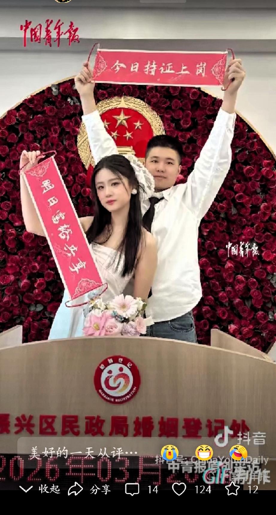 “太惊喜了!”辽宁一对新人领证,本以为就是普通的一天,谁知道结婚证一出来,新郎是消防员,结婚证尾号为119;新娘是医护人员,尾号恰好是120。这组数字并非刻意挑选,而是系统随机生成,让两人都感到意外又欣喜。 119守护平安,120守护健康,两个职业本就承载着守护他人的责任,如今连证件编号都如此契合,像是生活给予的温柔祝福。他们在各自岗位上坚守,用专业与担当守护他人,这份职业带来的默契,让缘分更显珍贵。 网友们也纷纷送上祝福,认为这样的巧合朴实又动人,没有刻意设计,却藏着最真诚的美好。爱情从不需要华丽的包装,双向奔赴的陪伴、彼此理解的坚守,才是最打动人的地方。 这对新人的经历,也让我们看到生活中不期而遇的温暖。平凡日子里的小巧合,往往能带来长久的感动,也提醒我们珍惜身边的陪伴与缘分。愿他们往后相互扶持,平安顺遂,在各自的岗位上继续发光,也在彼此的生命里温暖相伴。 生活中的美好,往往藏在这些不经意的瞬间。