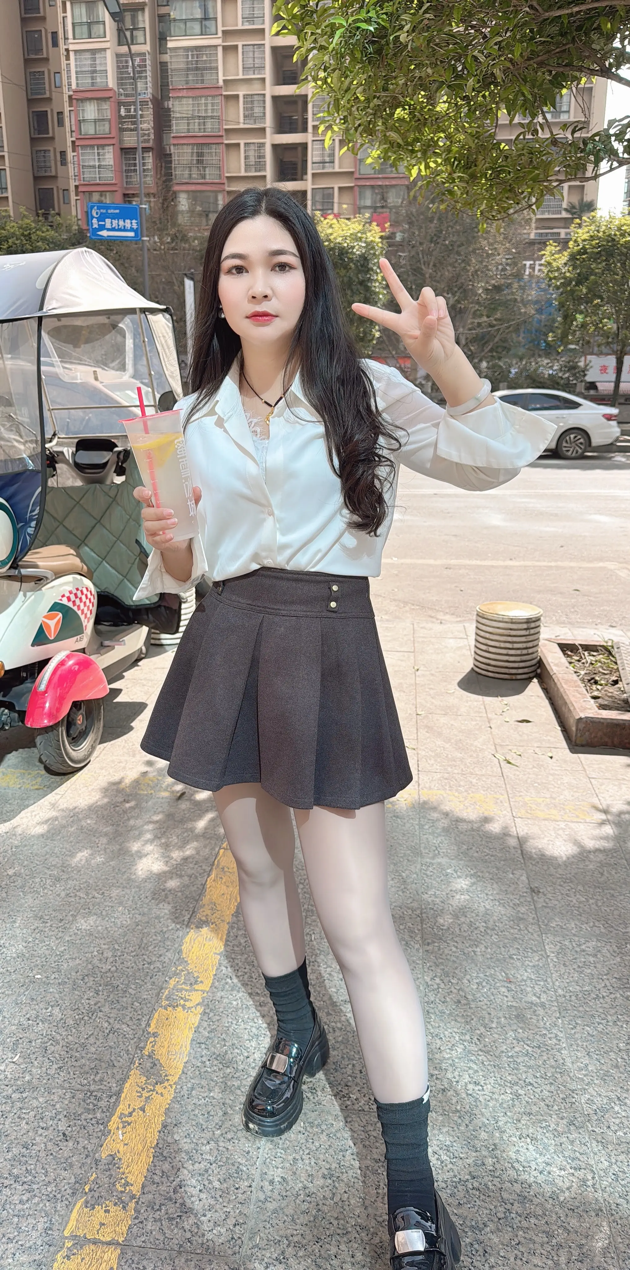 白色衬衫搭配短裙