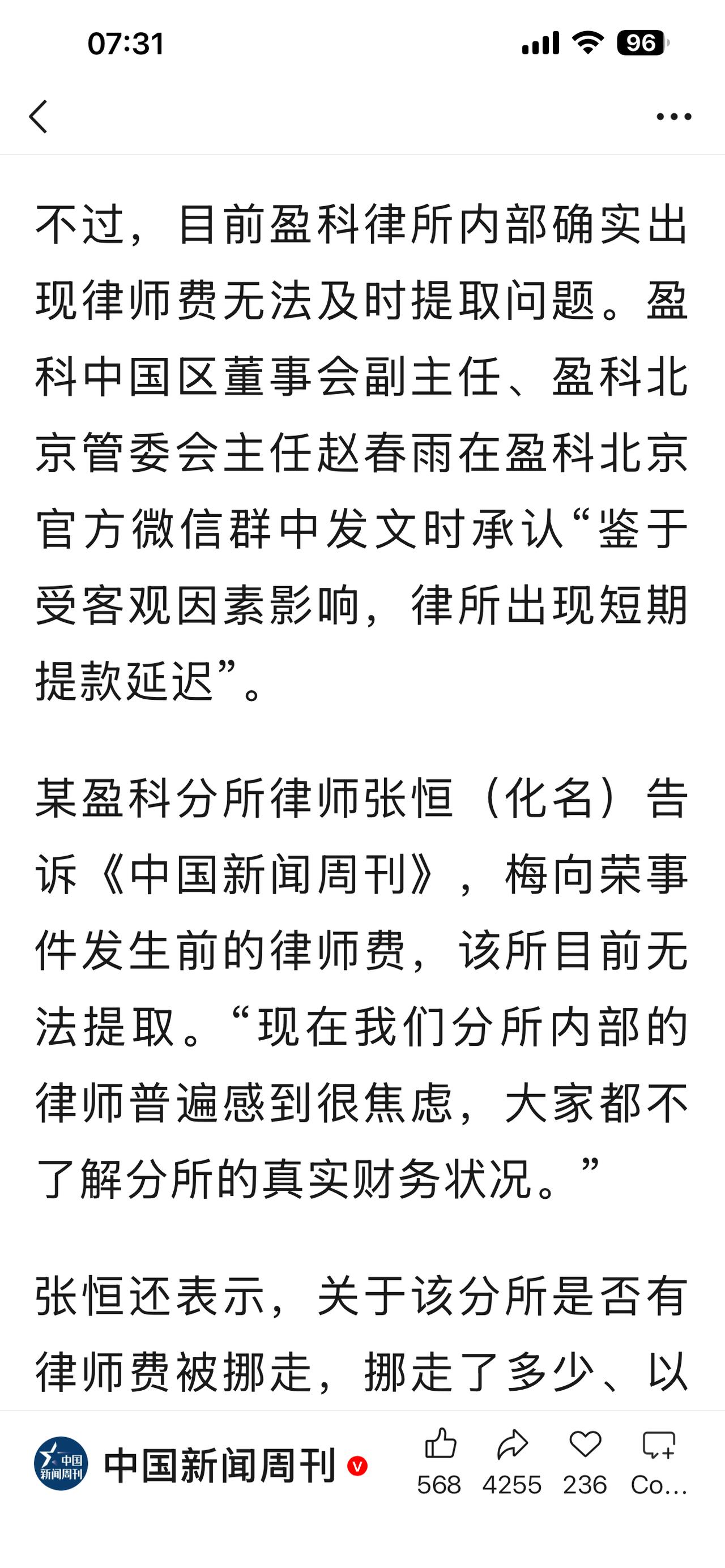 盈科梅向荣案最大的风险不是律师费提取困难的问题,而是盈科律所的合伙人是否要对债务