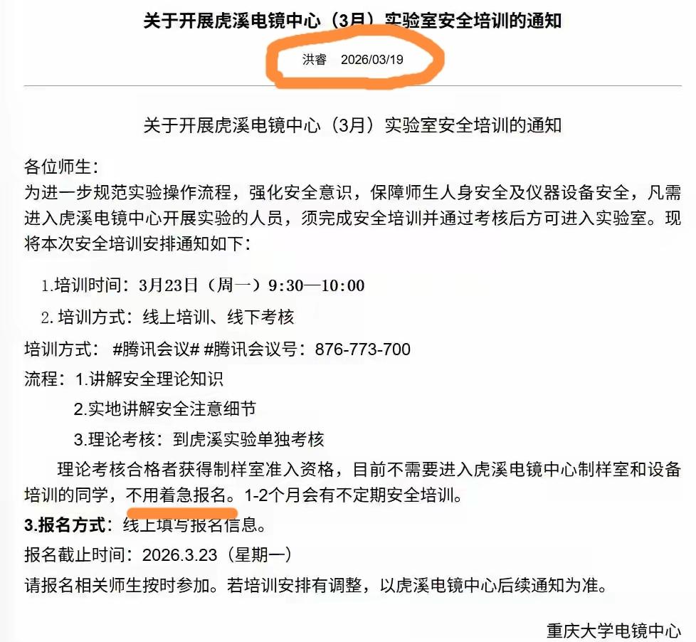 头天发安全通知,第二天就1死3伤!重庆大学这事儿,看得人后背发凉! 实验室闪爆,1个学生没了,3个受伤。最讽刺的是啥?出事前一天,人家实验室刚贴出通知说要搞安全培训(详见附图)! 通知还在墙上贴着,人就没了。这哪是安全通知啊,简直是“死亡预告”! 咱们来捋捋: 1. 通知发了=安全做了?现在某些单位搞安全,就是做做样子、拍拍照、发个朋友圈。真要是把安全当回事,能第二天就炸? 2. 实验室里那些瓶瓶罐罐、易燃易爆品,到底有没有人管?平时检查是不是就填个表、打个勾? 3. 一条人命啊!二十来岁的学生,家里培养到现在容易吗?就这么没了,谁来担这个责? 说难听点,别把安全培训搞成“安全表演”。纸上的通知救不了人,墙上的制度挡不住炸。平时舍不得花时间真排查、真演练,出了事再“高度重视”,有用吗? 一个学生,就是人家父母的一辈子。别拿命给形式主义陪葬了! 这事故不查出个水落石出、不追责到具体人,以后这种事还得发生!高校安全事故 大学安全隐患 重庆大学通报