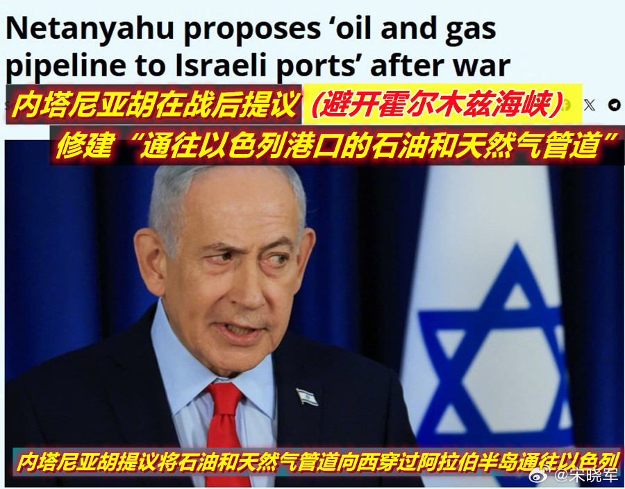 图1:前天美联社的报道;图2/3:昨天路透社披露了内塔尼亚胡的宏伟愿景,即在以色列插上一个吸管,把海湾地区的油气资源都吸往地中海;图4:现在的问题是,特朗普这个“短期投机党”能否满足内塔尼亚胡这个“神经质情怀党”的宏伟愿景吗?这需要美军把伊朗打成几级“残废”才能做到呢?接着看吧。