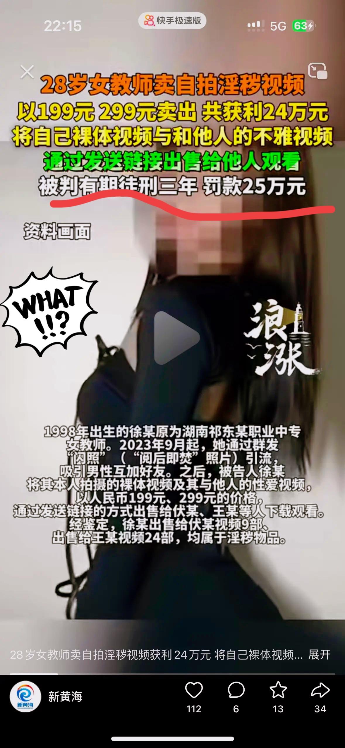 28岁女教师的所作所为,真的碎了所有人的三观!一位教书育人的女教师,不好好当老师教书育人,竟然靠拍卖自己的 不雅视频卖钱,真是丢死人了顶着教书育人的身份,这哪是为人师表,简直是丢尽了教育圈的脸! 身为职业中专老师,她用闪照引流附近男性,把不雅视频明码标价199、299元售卖,不到8个月就赚了24万,最终被判缓刑3年还罚了款,工作没了名声也彻底臭了。教师本是学生的榜样,要守得住师德、行得正作风,可她不仅知法犯法,更忘了师者的初心,自己立身不正,又怎么教出品行端正的学生?这不是简单的个人犯错,更是砸了教师职业的招牌,寒了家长和社会的心。 师德是教师的立身之本,越过底线的人终究会付出代价,一时的贪念换来终身的污点,太不值!你觉得该如何守住教师的师德底线,避免这类事情再发生?