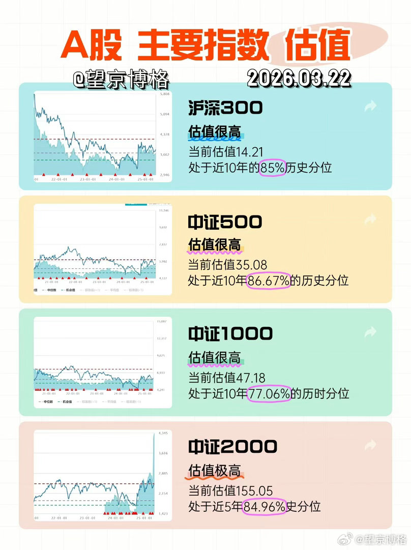 主要市场指数估值,2026/3/22大家多点🧡,博格持续更新