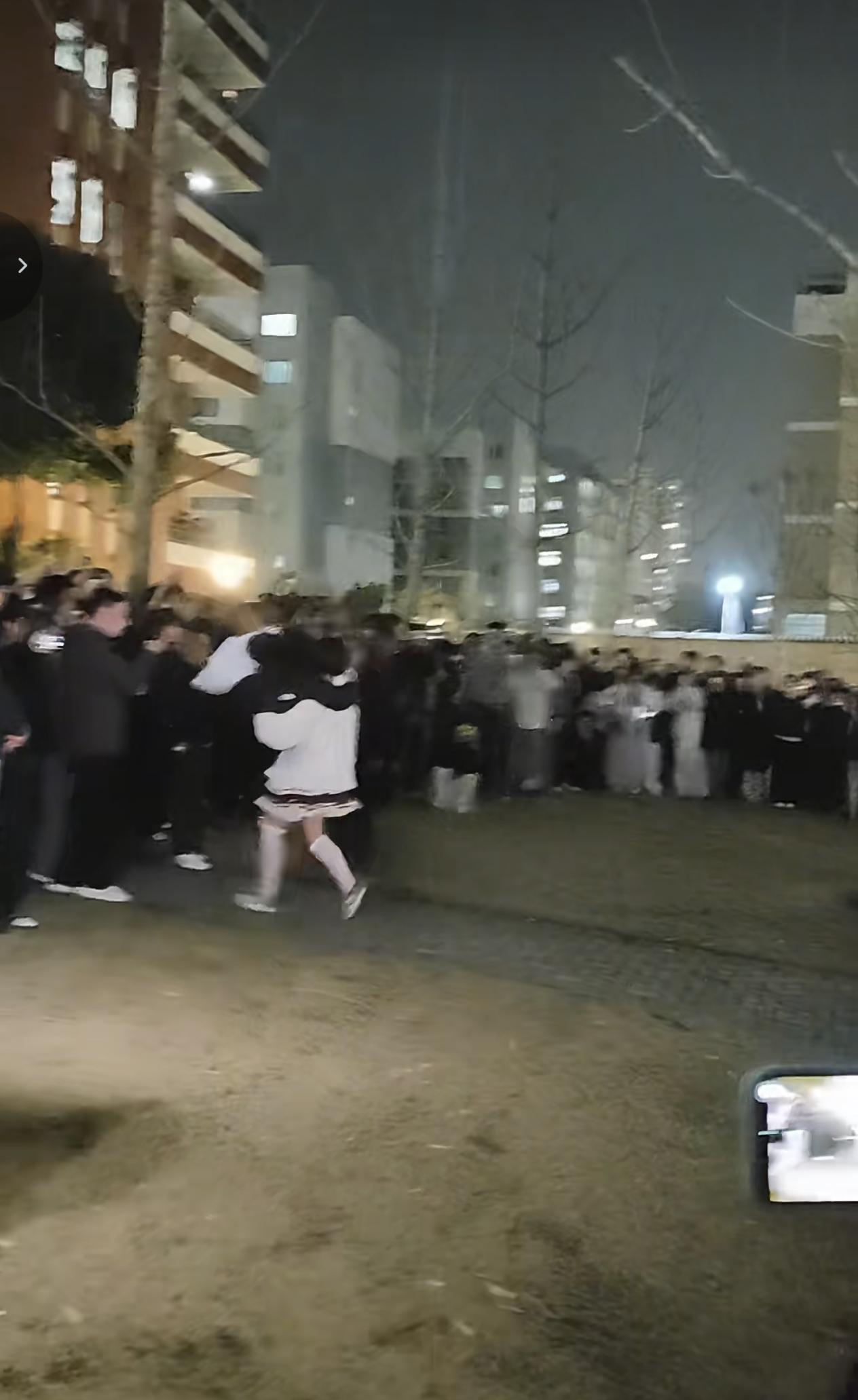 3月21日,湖北武汉。某高校宿舍楼下,一男生男扮女装向同一宿舍的另一男生表白,室