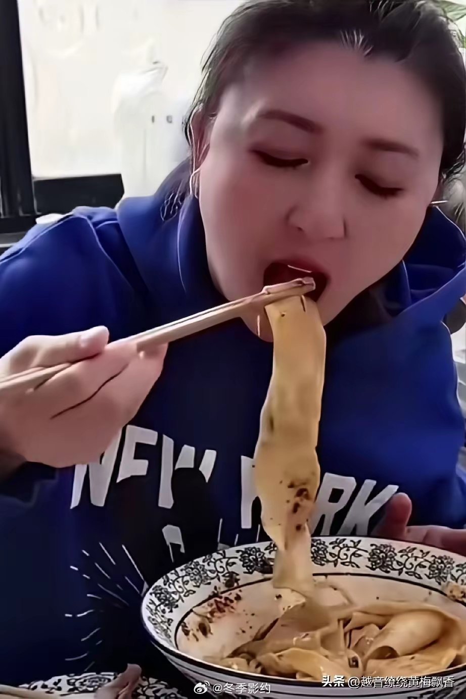 闫学晶现在吃饭也不说话了,就是低头咔咔一顿猛吃,一碗油泼面哧溜哧溜吃的太香了,不