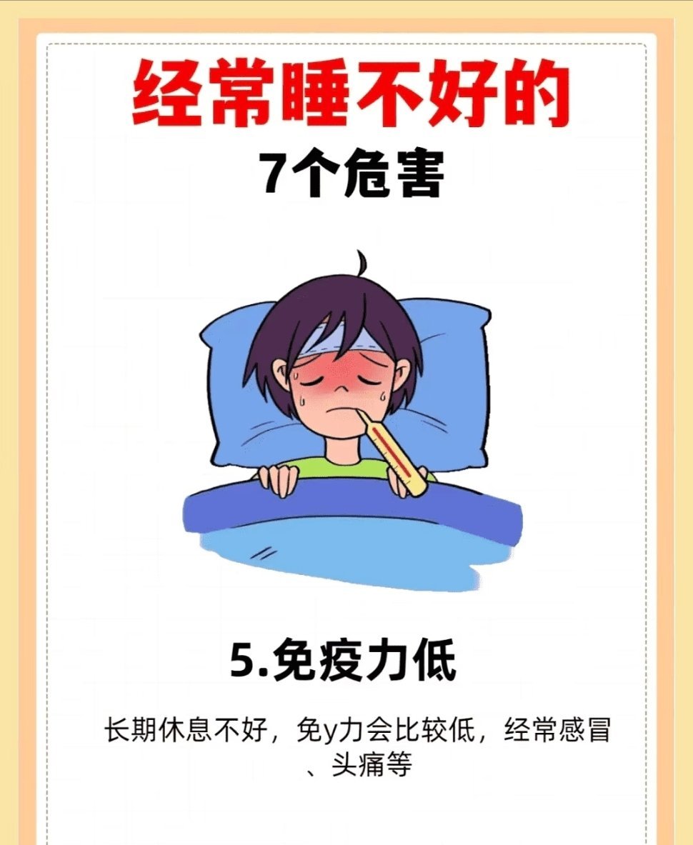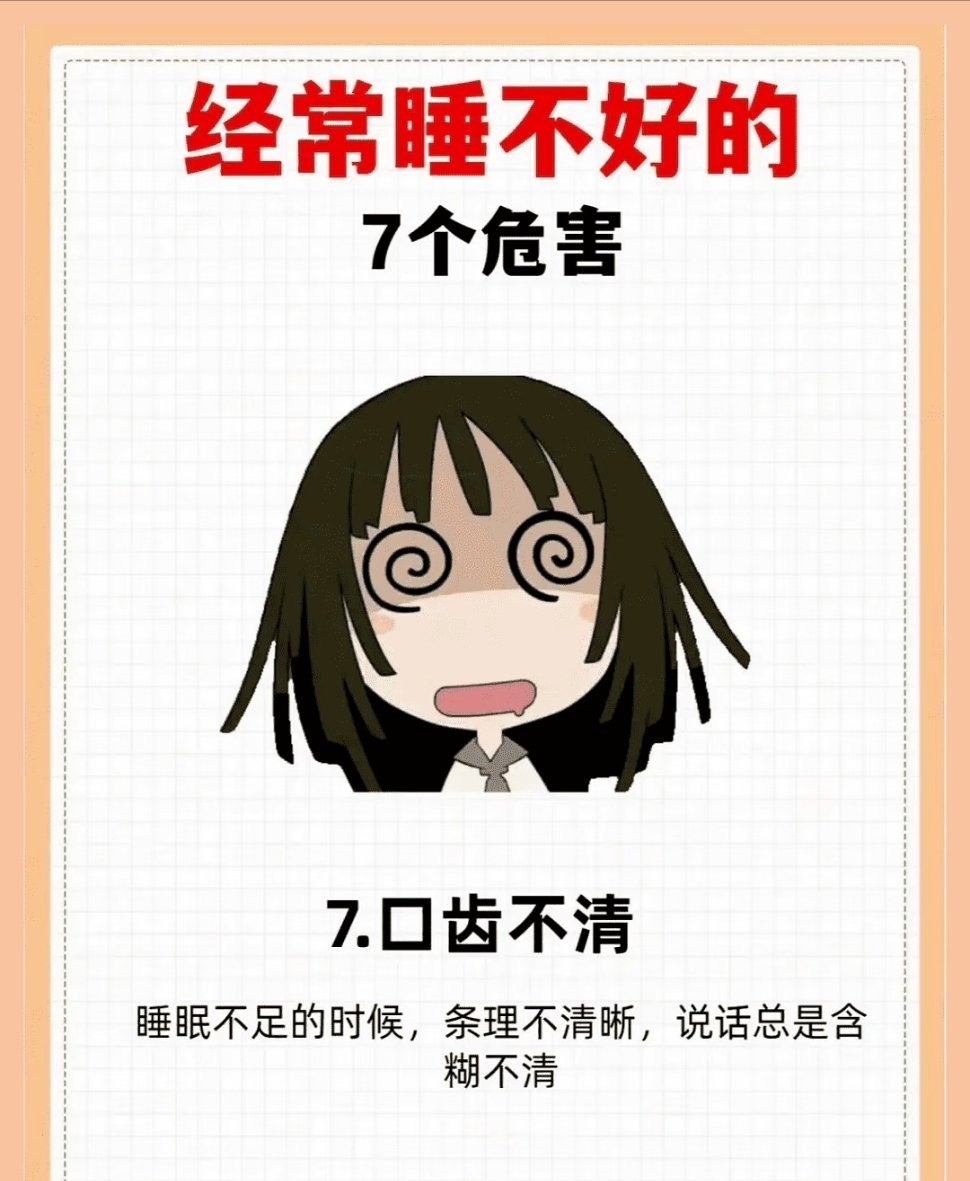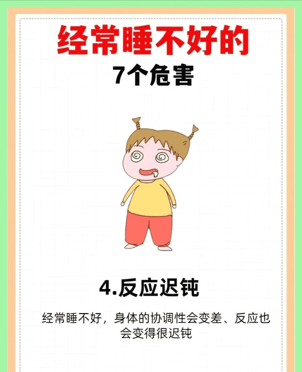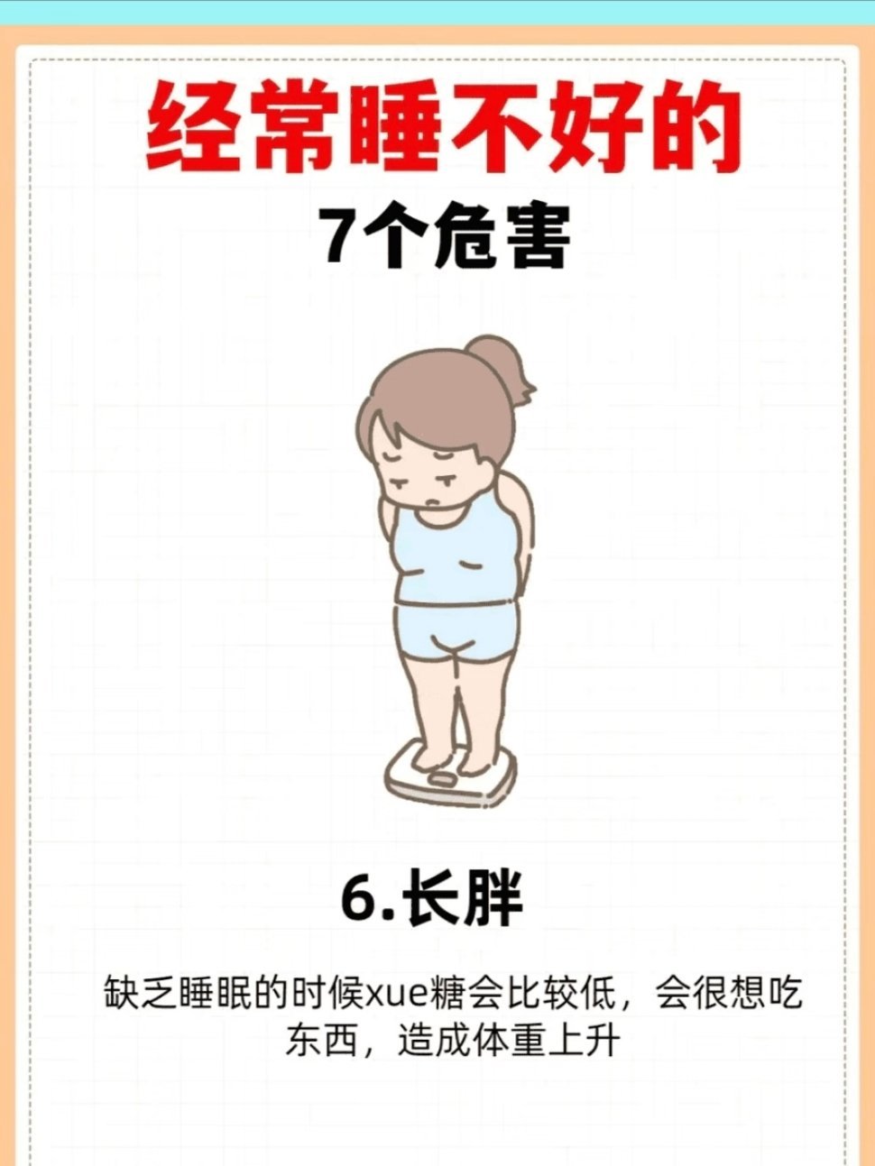 长期睡不好的危害有多大世界睡眠日长期睡不好,身体也会越来 越差!1.情绪很差 2.皮肤衰老 3.学习能力降低 4.反应变迟钝5.免疫力低 6.长胖 7.口齿不清