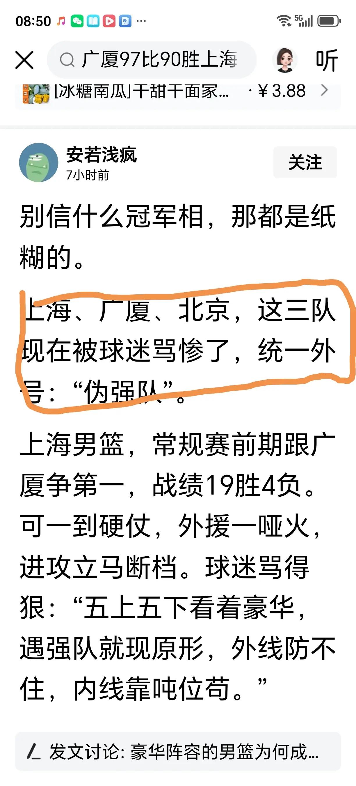 辽宁那个自媒体人挨打脸了吧? 上一场北京客场104:109爆冷输福建,被辽宁自媒体认定为伪强队。 昨晚北京在辽宁主场109:104战胜了伪弱队~辽宁。 北京用胜利为自己的实力正名非伪强队,赵睿34分、2板证明了他的价值。 辽宁俱乐部球员赵继伟空砍26分。没能为辽宁证明具备争冠实力,六连胜又被打断了,乌戈在场下学着杨鸣跳舞,毕竟年龄大了跳舞技术不如杨鸣。 辽宁俱乐部球员咋晚已经打得很好,只是因为实力差距太大、不是单靠点主场优势就可以补救的,努力争取季后赛八强机会吧!