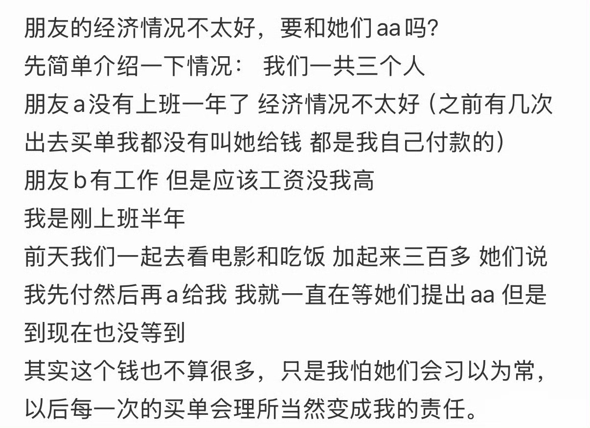 朋友的经济情况不太好,要和她们aa吗?