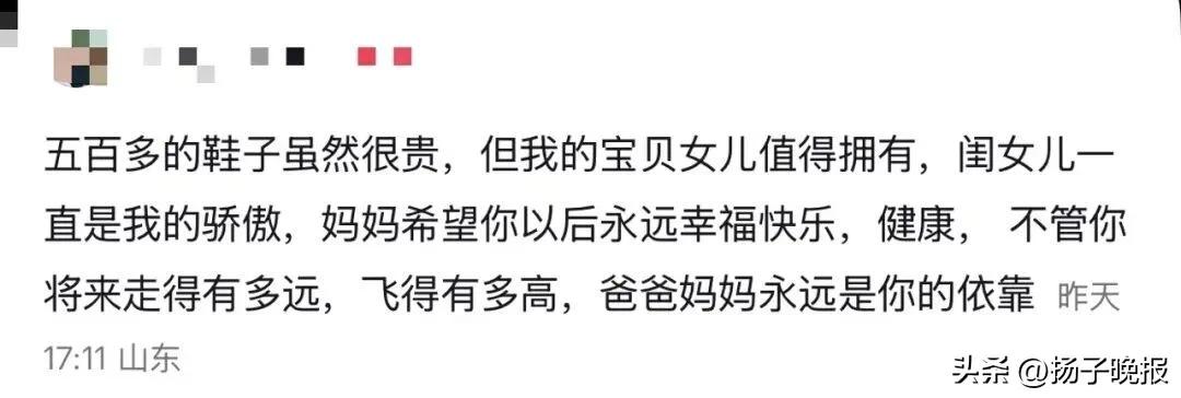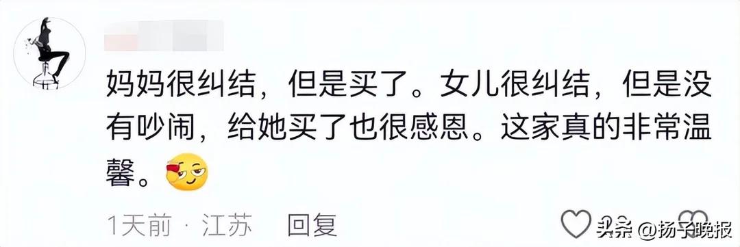 山东威海。 妈妈带着两个女儿去看鞋。女儿相中一双599元的,娘仨坐在店门口纠结半小时,决定买了。妈妈说,鞋很贵,但女儿值得拥有。 看到女儿脚上的鞋都开胶了,确实应该换新的了,但还是要看经济实力。女孩戴着牙箍说明正在矫正牙齿,这是必须,这个年龄是矫正牙齿的最佳时间,而鞋不是必需品,奢侈好看的鞋有很多,100、200的鞋质量也很好,而且现在网购更便宜,何必去实体店买呢? 女儿真懂事,不会给母亲出难题。