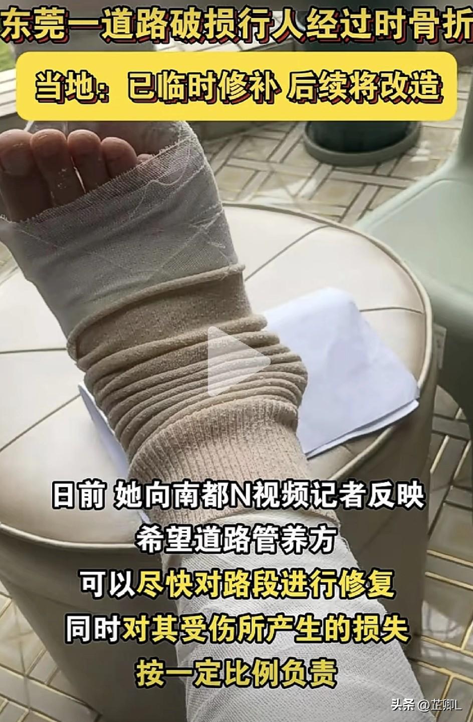道路坑坑洼洼,东莞女子踩坑摔骨折,社区要赔吗?全网吵翻了天! 大年初二,东莞郑女士本是开开心心出门赴宴,结果一脚踩进路面大坑,直接摔成右脚骨折!如今躺了一个月还下不了地,一场“到底该不该赔”的拉锯战,全网都在站队! 2月18日,郑女士约朋友去樟木头镇用餐,途经酒店门外路段时,因路面坑洼破损、高低不平,当场扭了脚踝。 当时她没当回事,谁知第二天剧痛难忍,去医院一查——右外踝下缘撕脱性骨折,还有积液和肿胀! CT结果、石膏固定、两家医院诊断,折腾下来整整休养一个月,至今还是没法下地行走。 吃喝拉撒全靠人照顾,医药费、误工费花了一大笔,郑女士越想越委屈:“我不是故意踩坑,但这条路破了好几年没人彻底修,临时补补根本没用!” 问题核心来了:到底该谁负责?钱该谁赔? 郑女士的态度很明确: ✅ 自己承认有责任,毕竟是成年人走路没注意; ✅ 但路面常年破损、存在安全隐患是关键!管养方不及时修复,才是导致她受伤的重要原因。 ✅ 所以,管养方必须赔部分损失,包括医疗费、误工费、精神损失费,更要赶紧把路彻底修好,别再害其他人! 记者去现场一看,瞬间懂了郑女士的愤怒!涉事路段确实坑坑洼洼,行人、骑车的经过都得小心翼翼,隐患肉眼可见! 而社区的回应,直接把争议推向高潮: 1. 先做补救:已对破损路段做了临时性修补,保证暂时能安全通行; 2. 给解决方案:早就把这条路纳入改造计划,2026年6月底正式动工重修,已经完成前期准备; 3. 关于赔偿:社区建议郑女士走法律途径界定责任,目前正在协商,谈不拢就走司法程序。 一句话总结:修是肯定修,但赔不赔、赔多少,得法律说了算! 这条新闻一出,全网彻底炸锅,两派观点吵得不可开交! 🔴 支持赔偿派: “道路管养方有责任!路面坑洼就是安全隐患,他们没尽到维护义务,就算要赔,也得按比例来!不然以后谁还敢走?” “郑女士已经够倒霉了,好好的年节变受罪,社区积极协商赔偿才是解决问题的态度,推给法律太敷衍!” 🔵 反对赔偿派: “成年人走路自己不看路?怪路破?那走在路上摔倒是不是还要怪路太滑?自己的责任不能全推给别人!” “法律途径最公平,该赔多少就赔多少,不能因为受伤了就乱定责任,不然对管养方不公平!” 其实大家争论的核心,无非是“个人责任”与“公共责任”的边界。公共道路的维护是政府和社区的义务,而成年人走路也有安全注意的责任,两者到底怎么划分,才是最合理的? 目前社区已经上门探望,协商也在推进。不管最终结果如何,6月底彻底修路是板上钉钉的事,这也算是给后续受害者的一份保障。 大家怎么看?你觉得路面坑洼致人摔伤,管养方到底该不该赔?评论区留下你的观点,咱们好好辩一辩! 素材来源:南都东莞,侵联删!