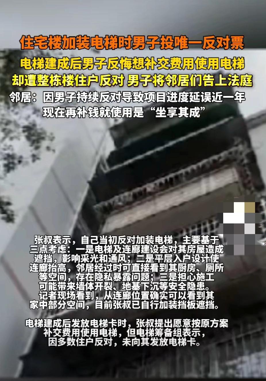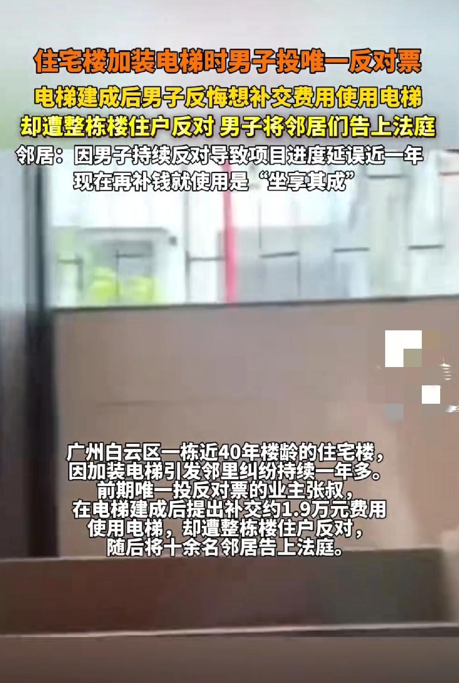 真香翻车!当初拼命反对装电梯,如今补1.9万想用,全楼邻居直接拒绝🙅🏻‍♀️ 广州白云区一栋40年老楼,因为加装电梯闹得邻里反目,这事太让人有共鸣了! 当初整栋楼商量装电梯,业主张老师是唯一投反对票的人,各种阻拦,导致工程拖了一年多,邻居们费心费力好不容易才把电梯建起来。 如今电梯通了,出行方便了,张老师立马反悔,主动提出补交1.9万元,想要刷卡用电梯。结果消息一出,全楼住户一致反对,谁都不愿意惯着他。 邻居们气得不行:当初你百般阻挠,耽误工期、增加麻烦,现在享现成的,哪有这么好的事?沟通无果后,张老师直接把十几名邻居告上了法庭,好好的邻里情分彻底闹僵。 说实话,老小区装电梯本就是便民好事,高楼层盼着方便,低楼层有顾虑可以理解,但凡事得讲良心、守规矩。当初拖后腿,现在想坐享其成,换谁心里都不舒服。邻里之间互相体谅、有难同当,才能和和气气过日子,只想着自己占便宜,最后只会里外不是人。 目前法院还在审理,类似案例大多支持补钱可用,但人情这关真的过得去吗? 大家怎么看?你支持张老师用电梯,还是觉得邻居拒得对?你家小区装电梯也有这种矛盾吗?评论区聊聊! 老旧小区加装电梯 邻里关系