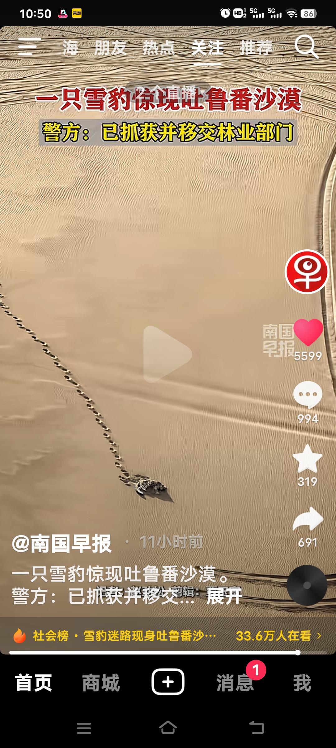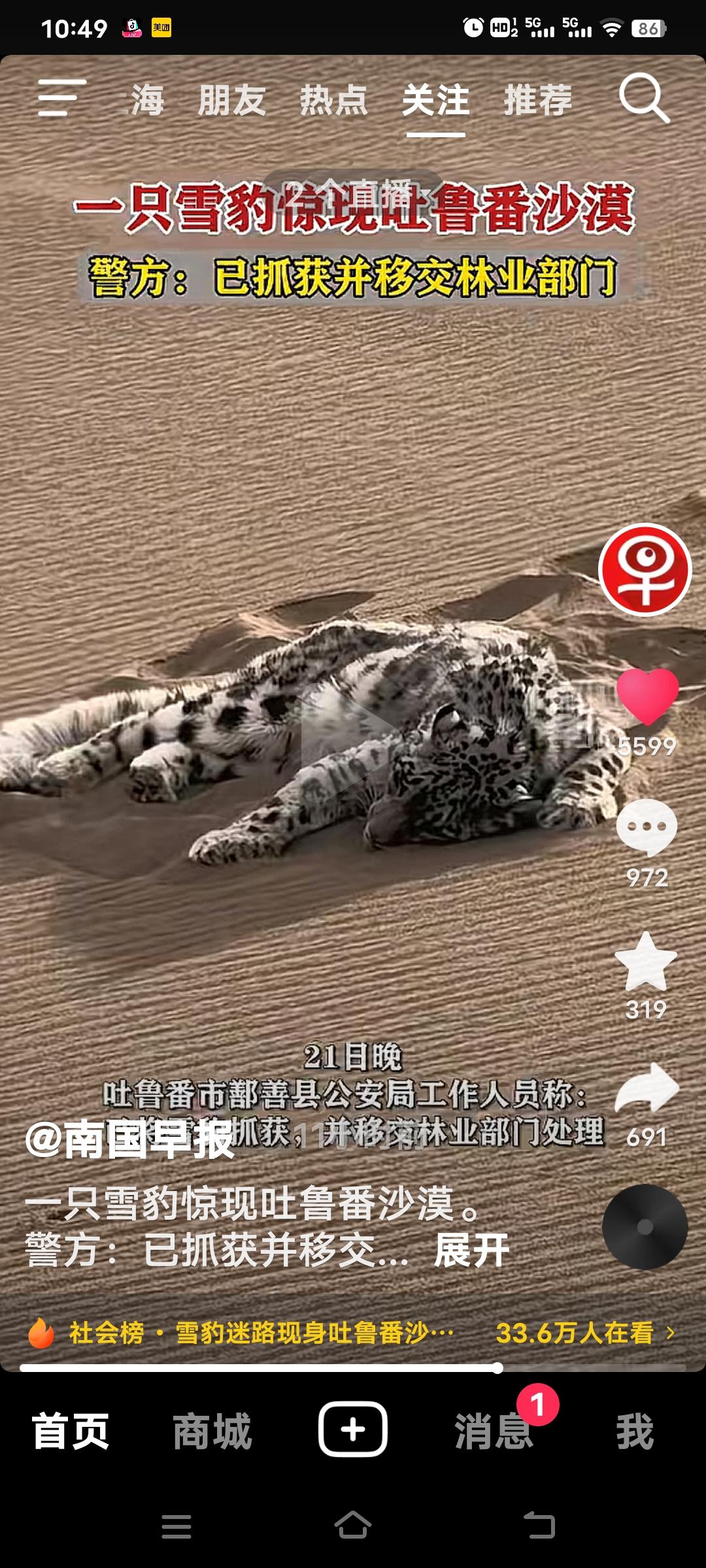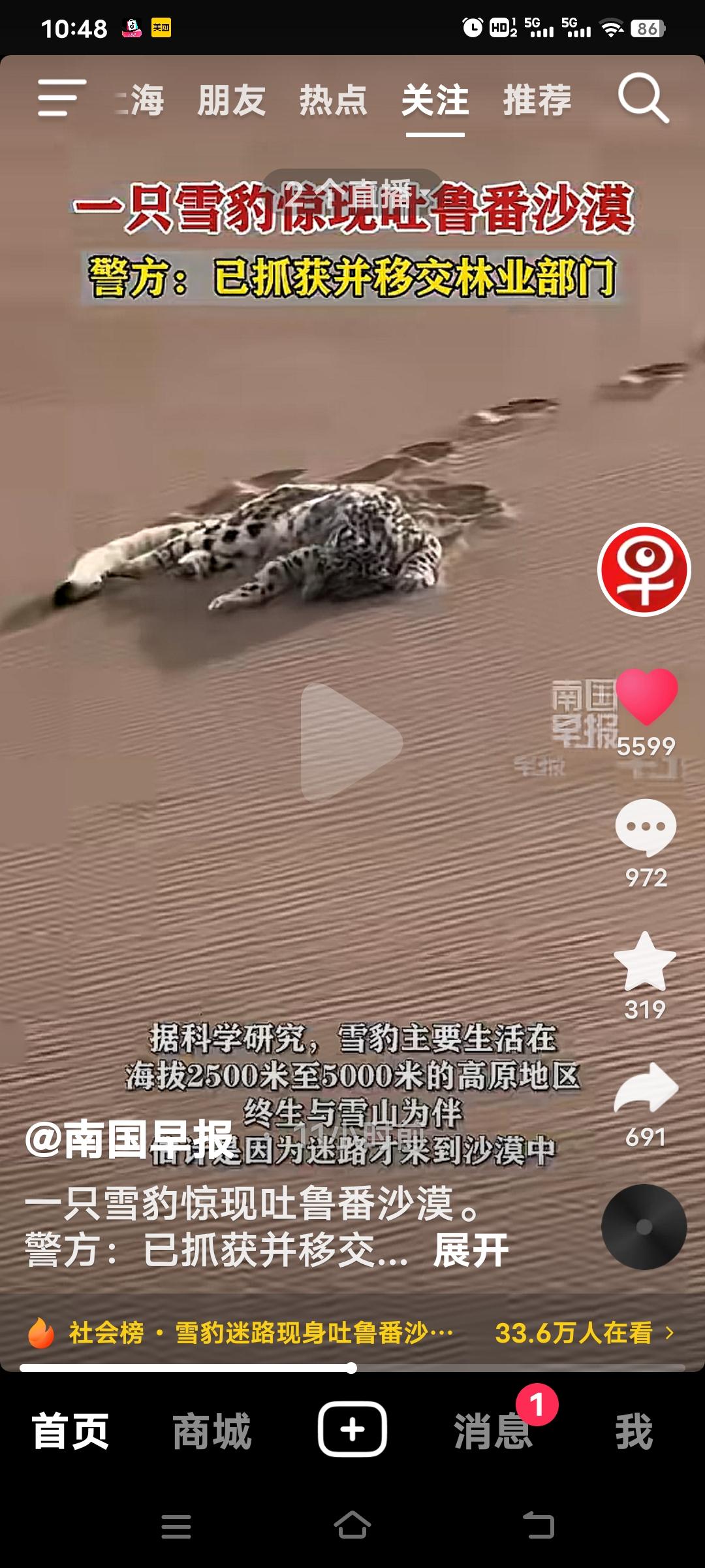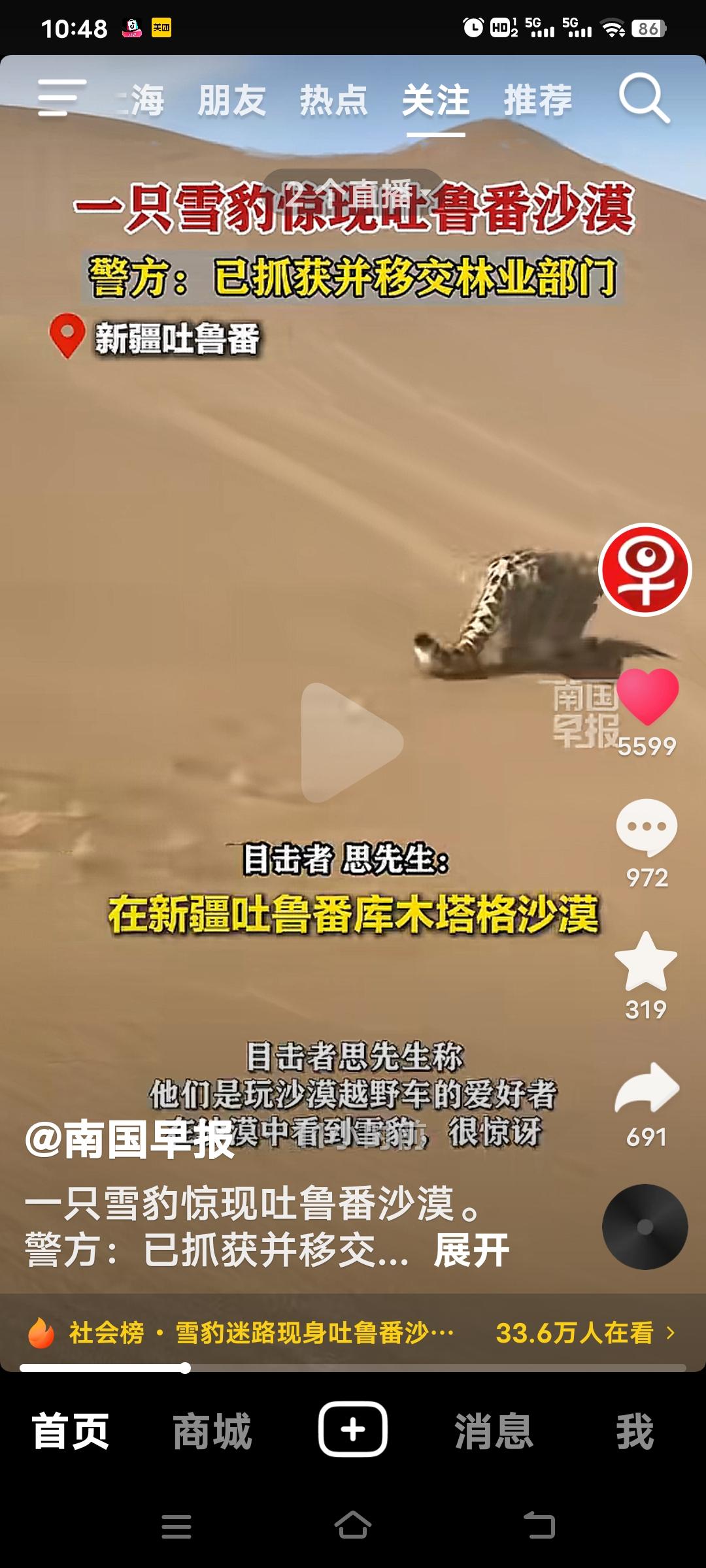 3月21日,新疆吐鲁番鄯善县的库木塔格沙漠出现震惊的一幕!有自驾游客目击者思先生看到这一幕,一只雪豹静静的趴着,看上去很疲惫! 据科学家研究雪豹通常生活在海拔2500米至5000米的高原雪山地区,估计是迷路才跑到沙漠。消息一出,瞬间在全网引发轰动。 当地公安局工作人员称,已被雪豹被林业部门控制带走。好在它状态良好,之后观察一段时间就会择机放生。雪山精灵误入黄沙,这场意外相遇也让大家揪心又暖心,希望雪豹之后能好好回到自己的家园。
