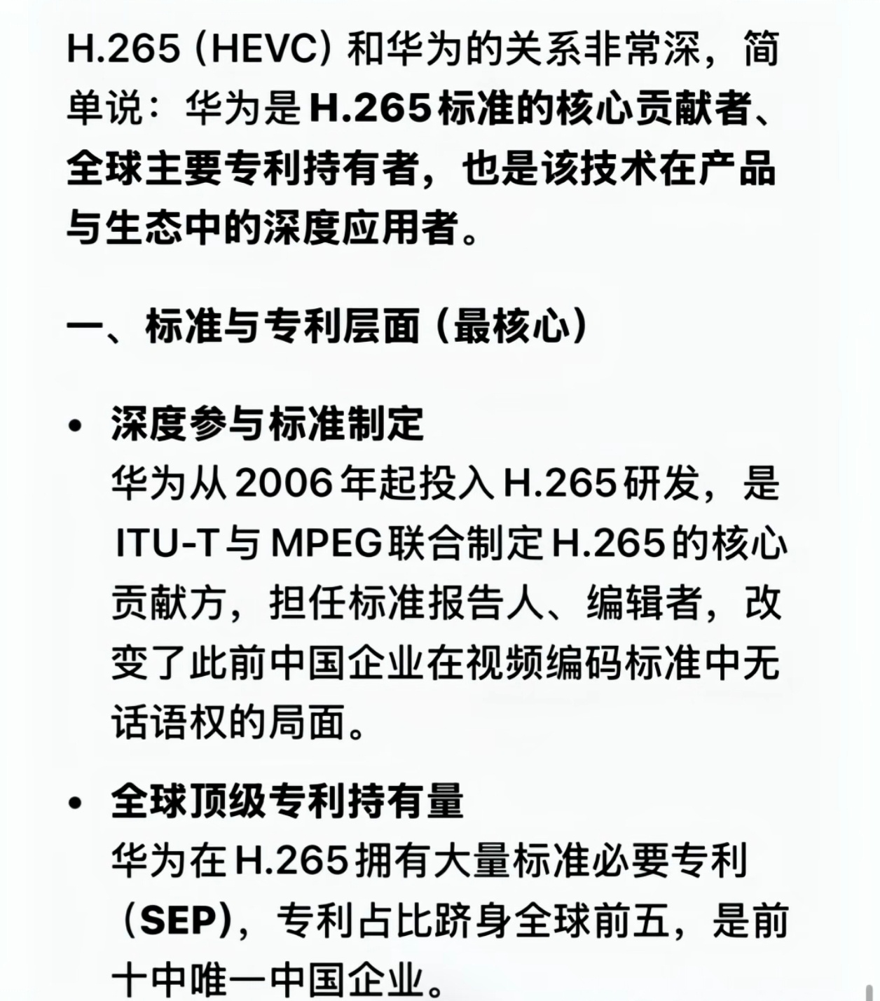 才了解到,华为竟然还是H.265标准的核心贡献者。
