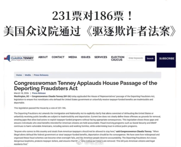 美国众议院通过了《驱逐欺诈者法案》,讲师可能要遇到麻烦了…3月18日,美国众议院以231票对186票的投票结果,正式通过了《驱逐欺诈者法案》。该法案的核心内容可概括为: