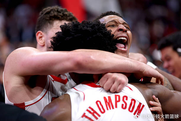 阿门·汤普森如神兵天降,从人缝里硬生生把篮球摁进篮筐,丰田中心瞬间炸成一片红色海洋!