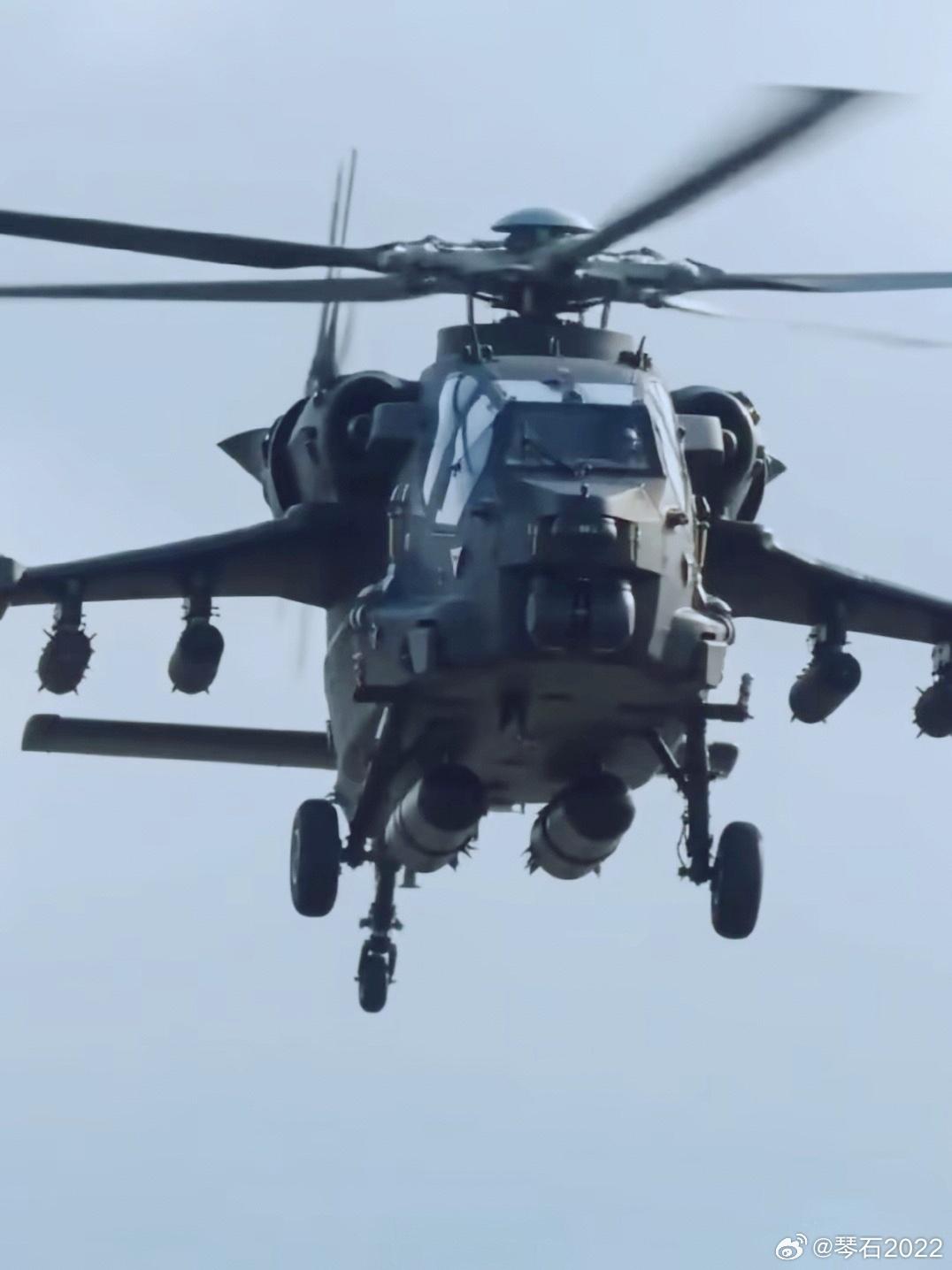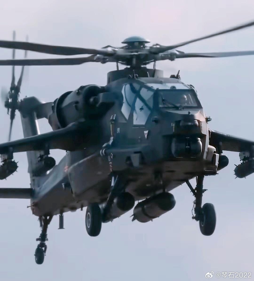 我估计这是世界上未来十年唯一的一款新研制重型武装直升机了,美帝没有什么动力和能力了,毛子没有什么时间和资源支撑研制了,而欧盟也许只是一个历史名词了。直-21重型武装直升机要很快公开官宣了,现在有高清的正面照片陆续流传开了。最为特别的设计就是机腹的两个挂点,照片中挂着副油箱,未来也许可以挂载重型对地导弹。没有安装机顶雷达天线,但是有四面相控阵天线提供360的环视能力,直-21的作战设定可能会和传统的美系武装直升机不一样的。