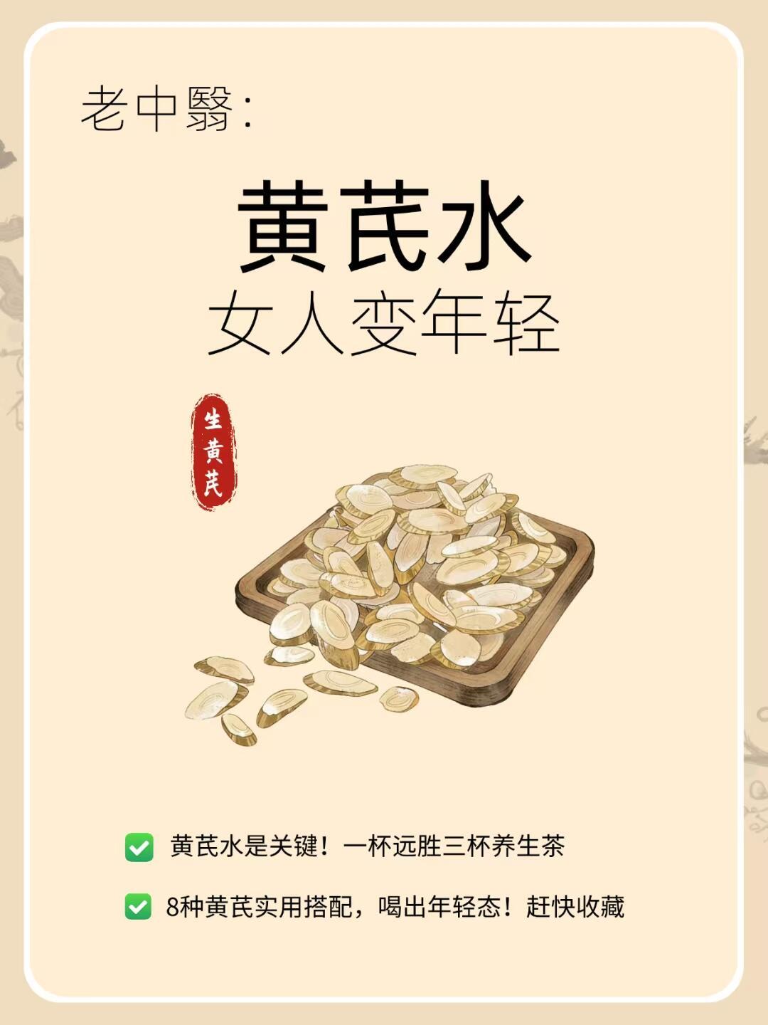 🍵黄芪煮水万能公式✅做法:黄芪10-15片(约8g)+清水800ml,养生壶煮20分钟左右💫8种高阶变美配方(收藏级攻略)1⃣ 元气回春水🍃黄芪+红枣+枸杞2⃣ 仙女腮红饮🌹黄芪+玫瑰+桂圆3⃣ 反光板组合🍯黄芪+茯苓+麦冬4⃣ 元气四宝茶🪷黄芪+党参+西洋参+麦冬5⃣ 抗老金字塔🕊黄芪+红参+桑葚6⃣ 灭火器特调🌼黄芪+菊花+金银花7⃣ 暖宫小太阳 ☀黄芪+生姜+红糖8⃣ 助眠神仙水🌙黄芪+酸枣仁+百合📍关键Tips:❶ 连续喝3天停1天,避免上🔥❷ 搭配肉类煮汤效果翻倍(乌鸡/排骨)❸ 阴虚体质搭配麦冬/玉竹平衡国医的精诚力量
