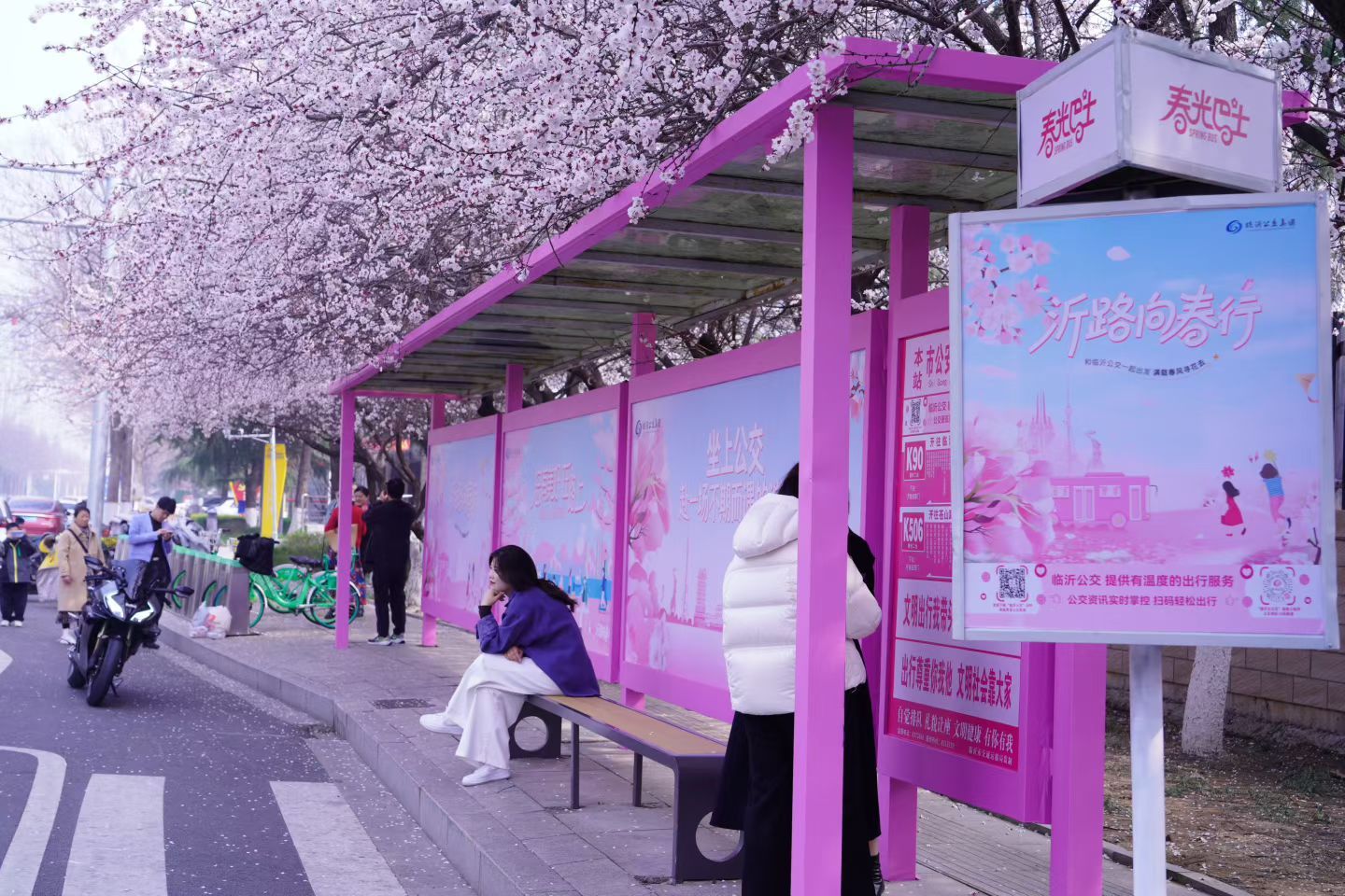 2026全国寻春地图 春天,赴一场不约而遇的浪漫!这里是临沂最美公交站牌,樱花树