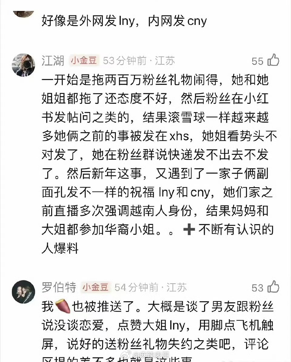 钟丽缇两个女儿都翻车了之前姐姐jaden把妹妹考拉用脚滑飞机屏幕的照片发网上了最近考拉就发了一张自拍,旁边是姐姐jaden坐马桶照片姐姐外网发LNY,内网发CNY,考拉就跑去点赞,后来网友发现了又去骂姐姐考拉之前还因为谈男朋友,拖欠粉丝礼物翻过车