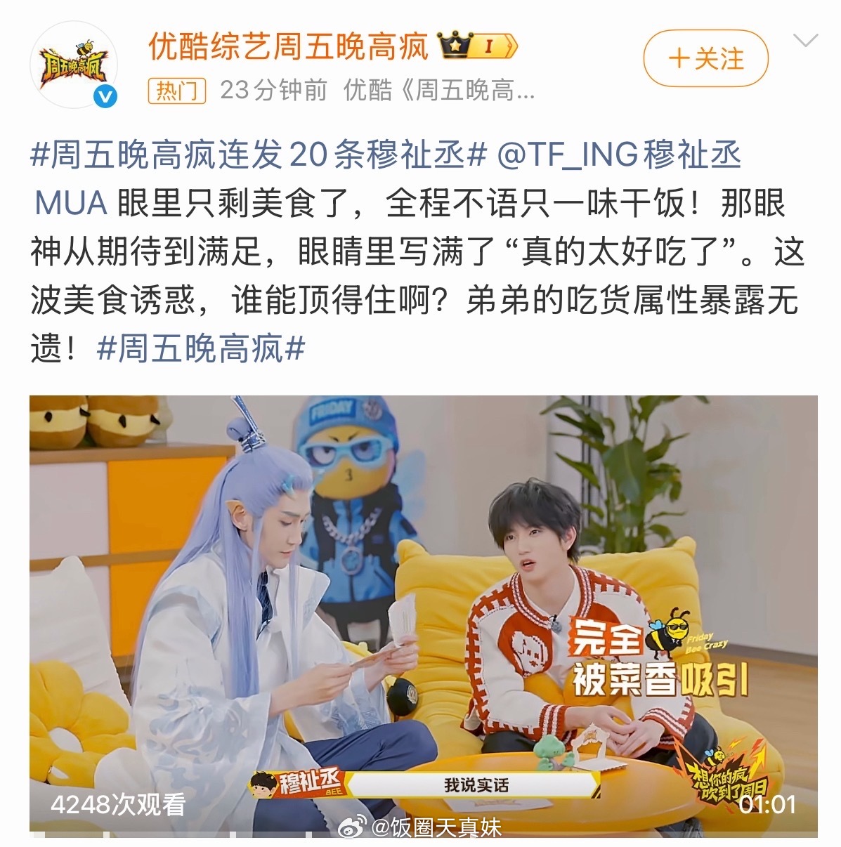 周五晚高疯连发20条穆祉丞 这波操作是真够宠的,连发20条穆祉丞,明摆着藏不住喜