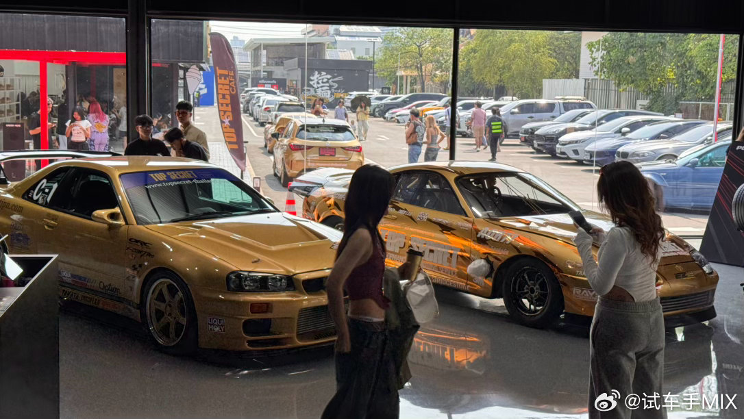 来泰国找些改装的配色灵感找到一家黑金色主题的门店停车场是全JDM风格,很容易会有